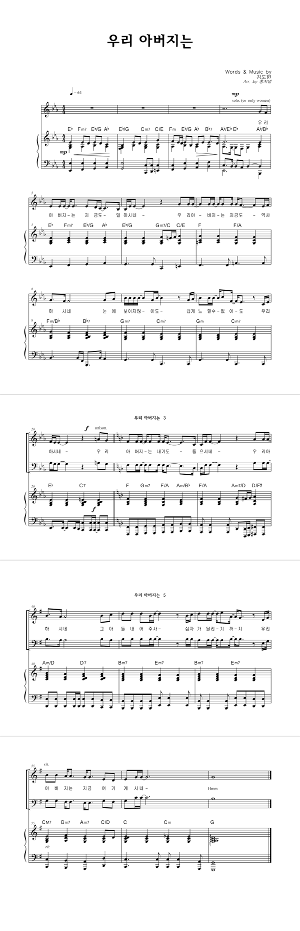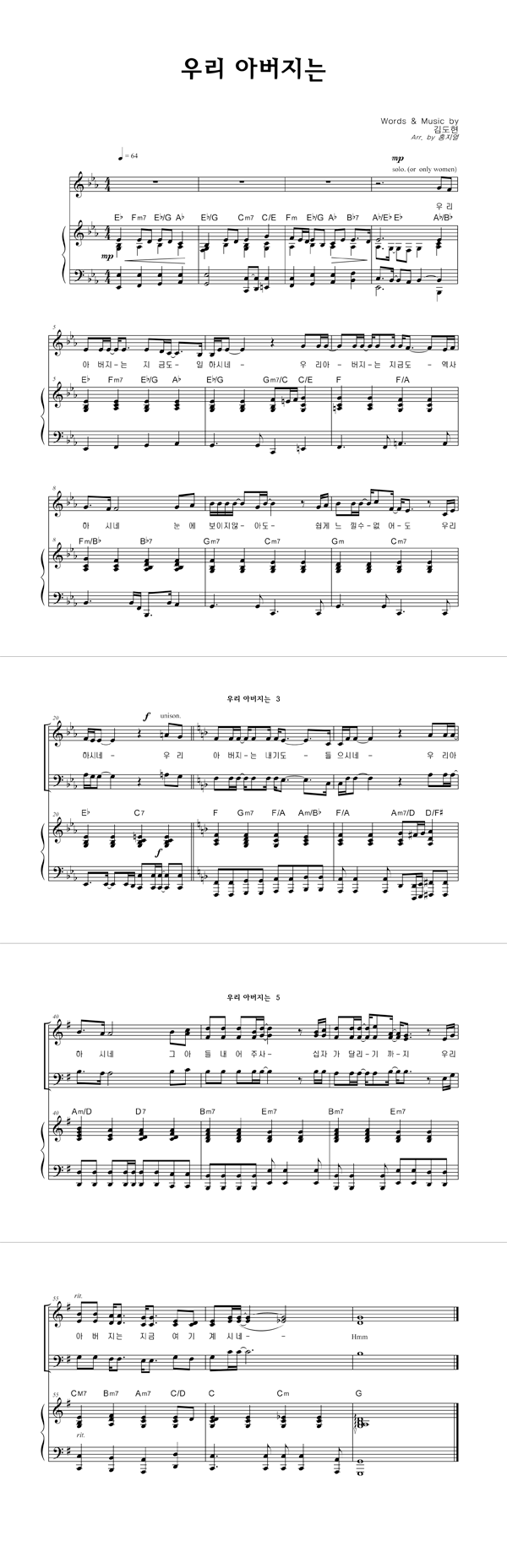 | 우리 아버지는 | 성가 3부 + 피아노 반주 |