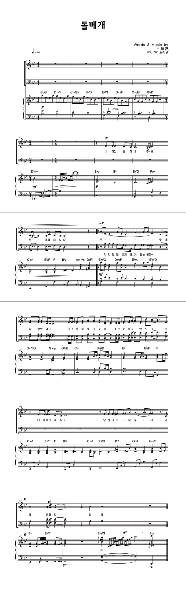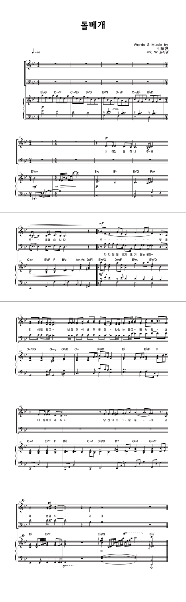 | 돌베개 | 성가 2부 + 피아노 반주 |