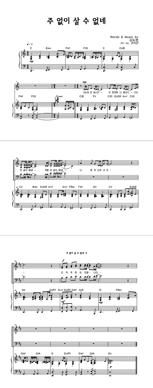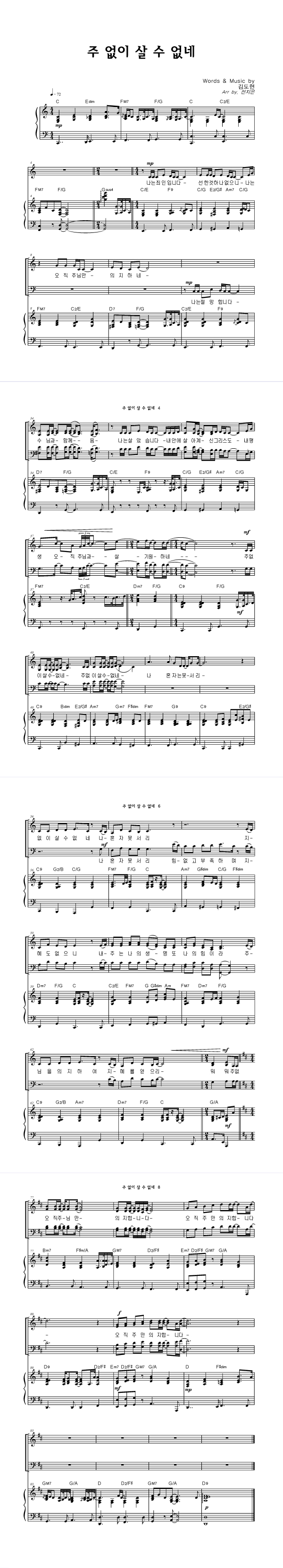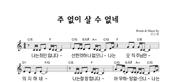 | 주 없이 살 수 없네 | 성가 2부 + 피아노 반주 |