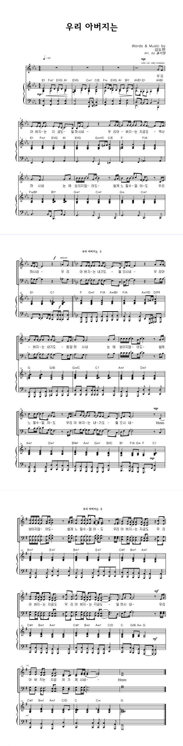 | 우리 아버지는 | 성가 4부 + 피아노 반주 |