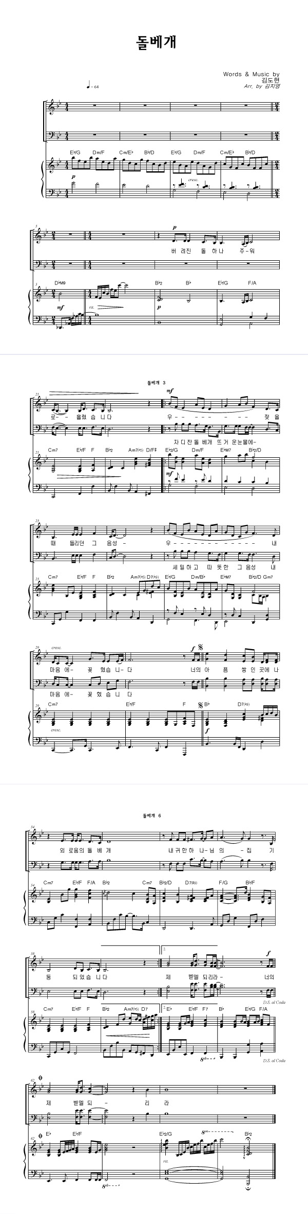 | 돌베개 | 성가 3부 + 피아노 반주 |