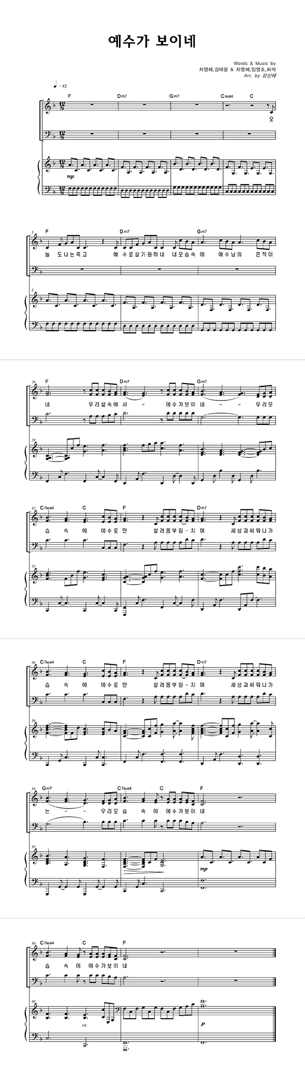 | 예수가 보이네 | 성가 3부 + 피아노 반주 |