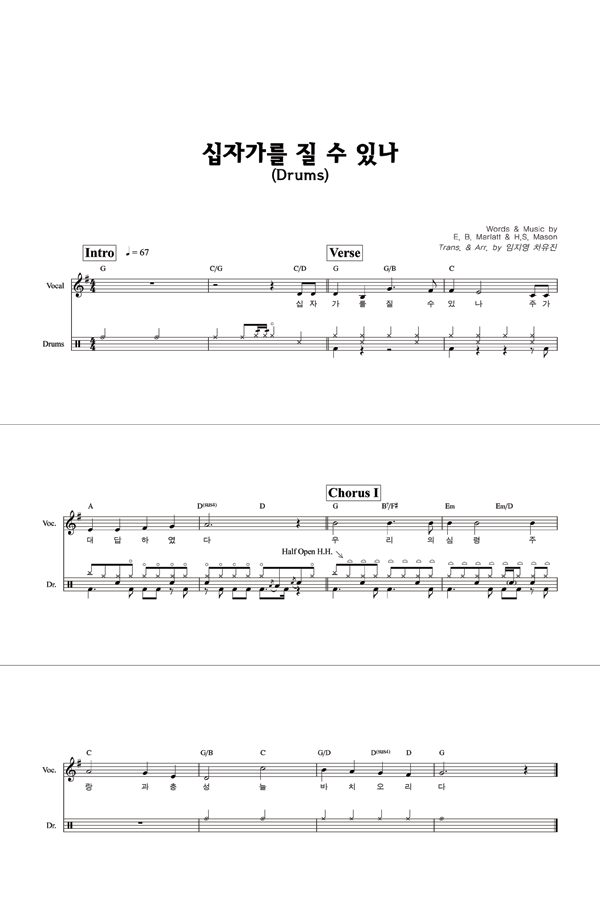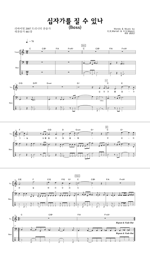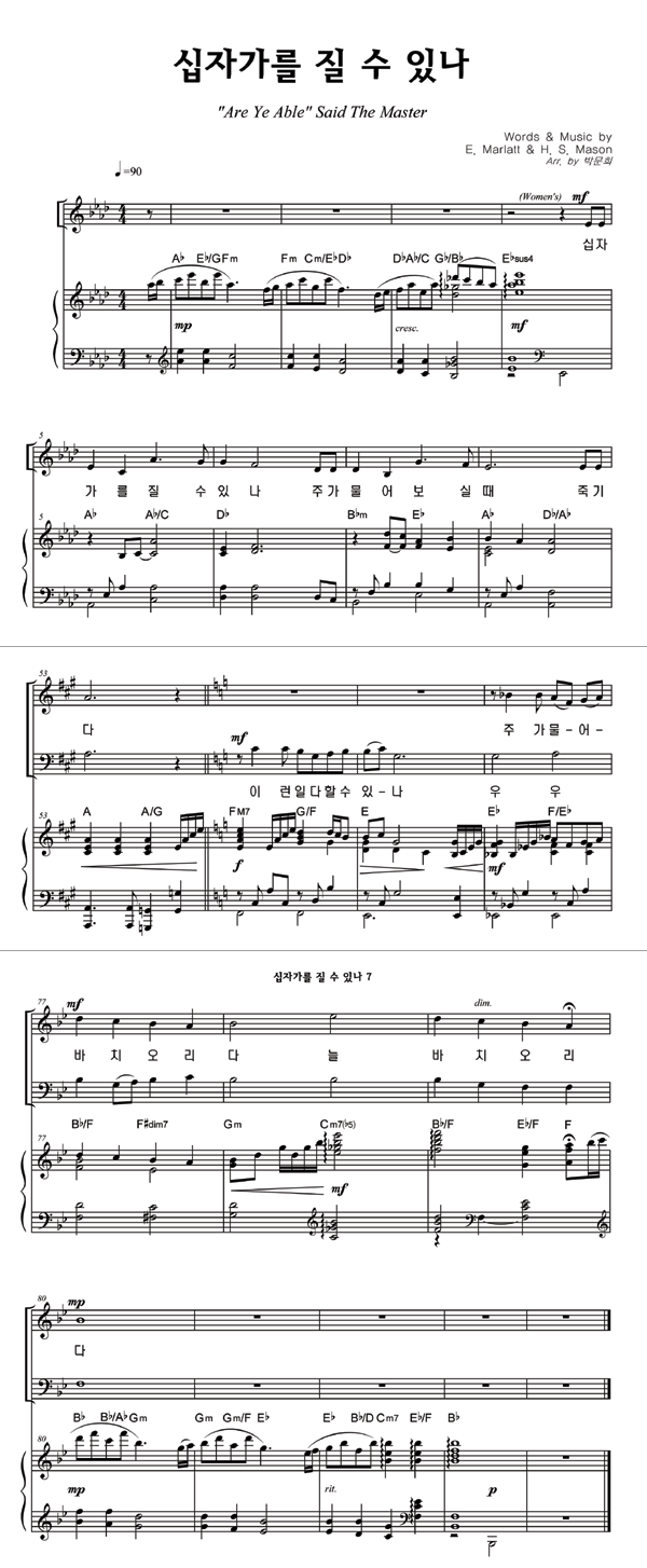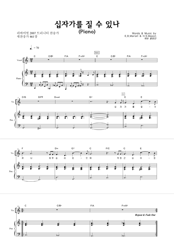 '십자가를 질 수 있나 (찬송가 461장)' 의 다른 악보형식