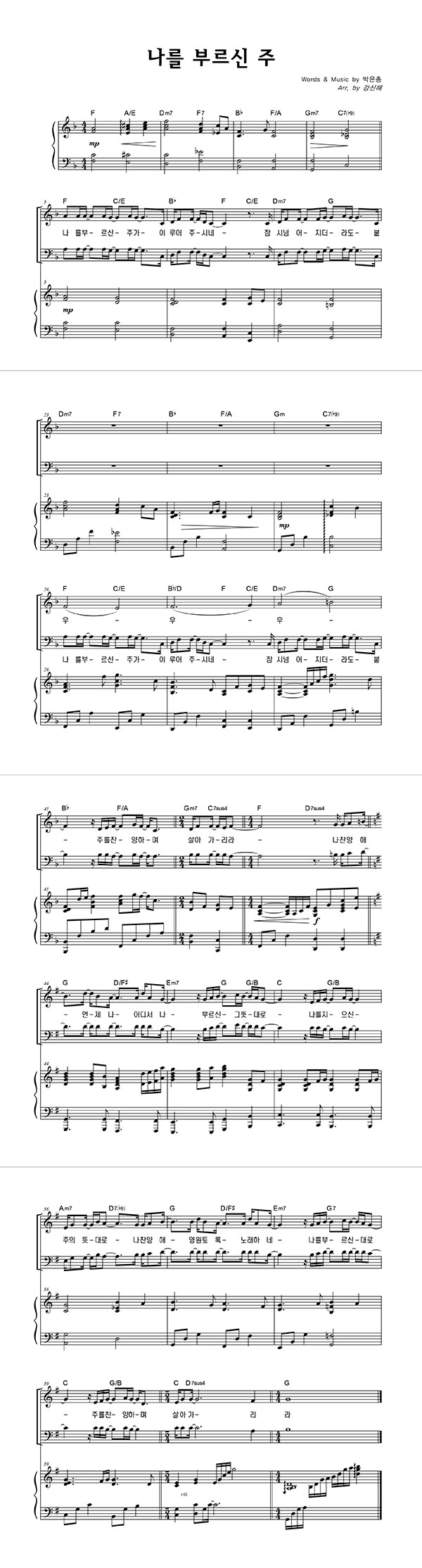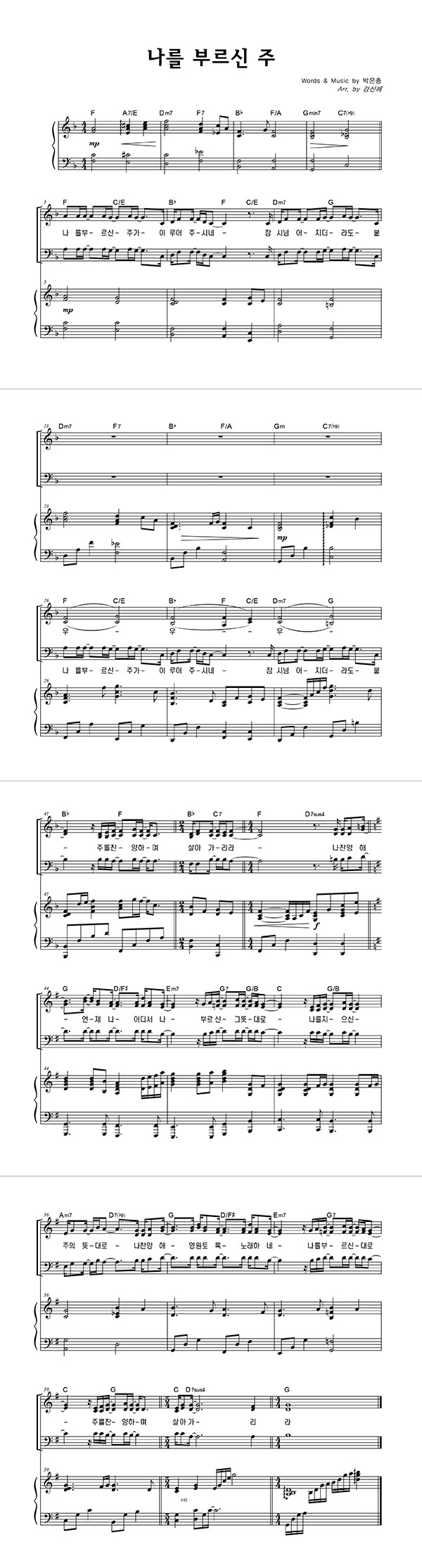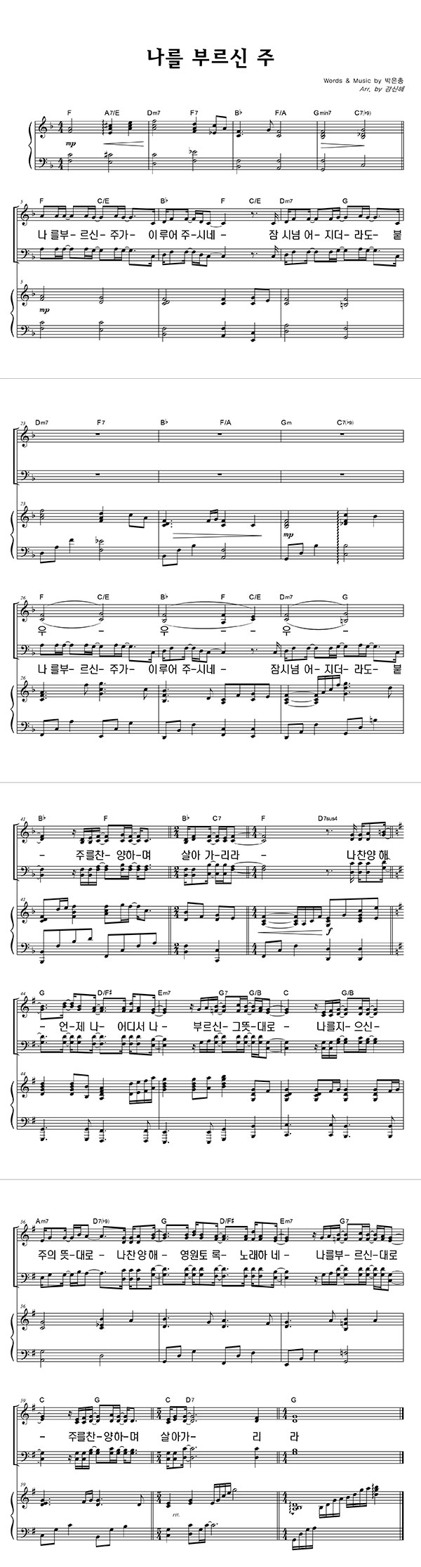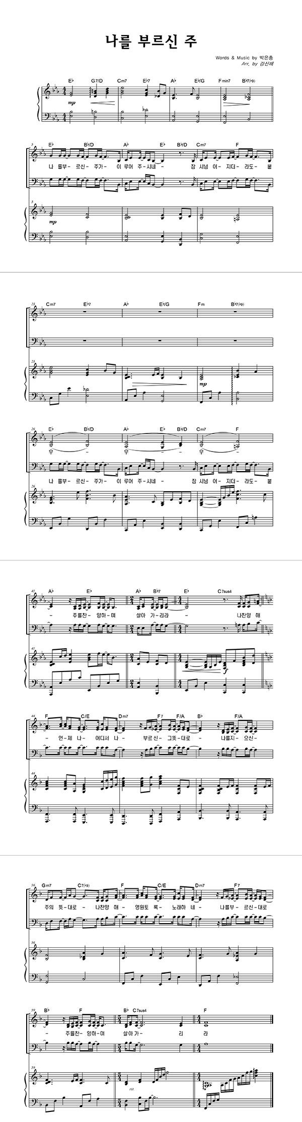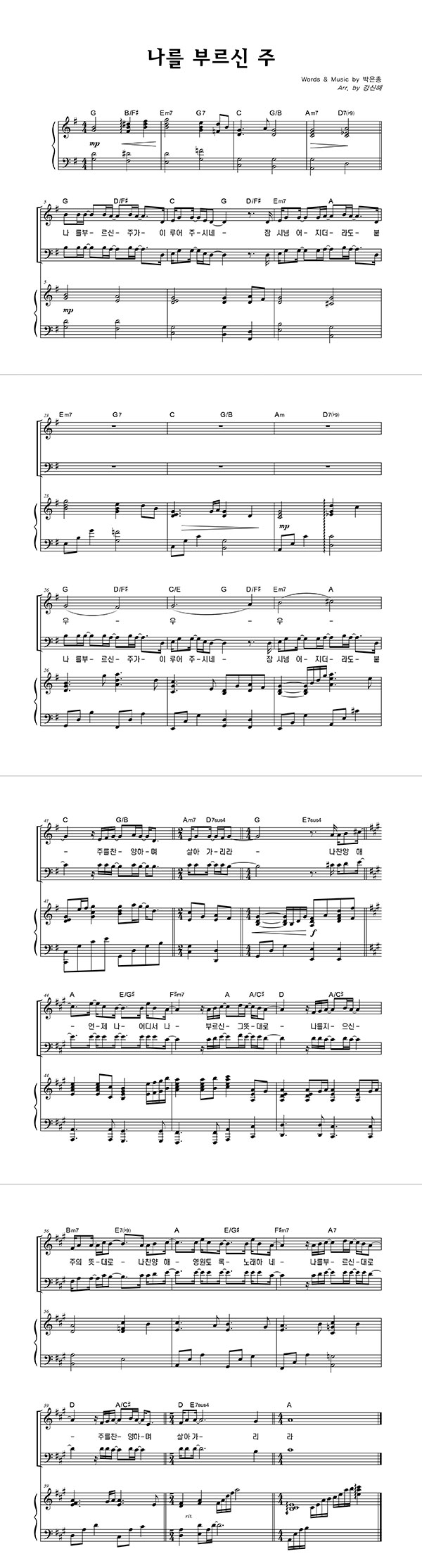 | 나를 부르신 주 | 성가 4부 + 피아노 반주 |