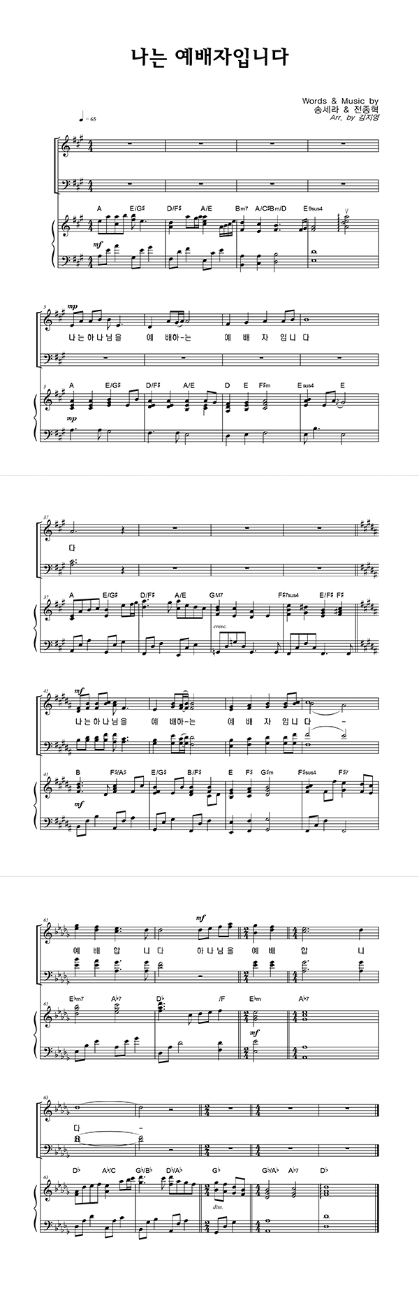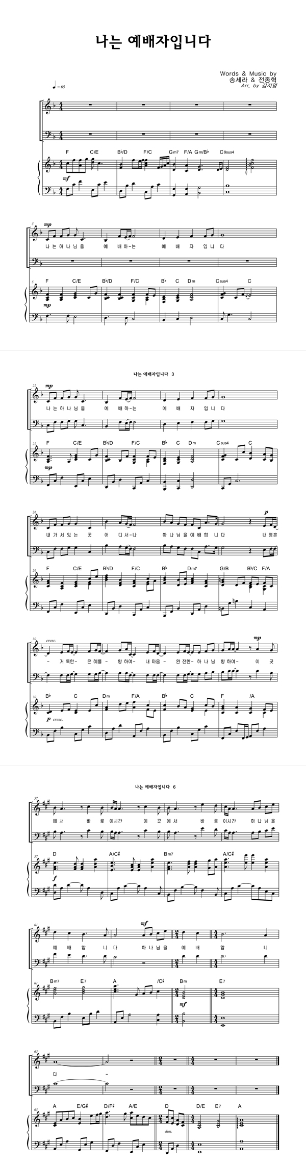 | 나는 예배자입니다 | 성가 3부 + 피아노 반주 |