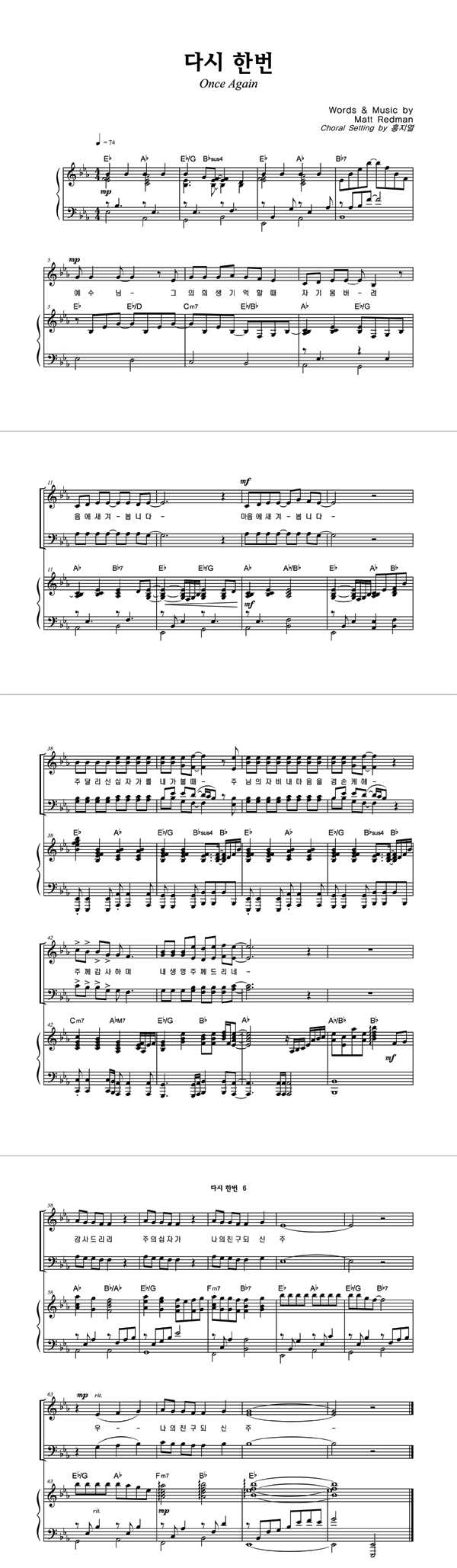 | 다시 한번 | 성가 2부 + 피아노 반주 |