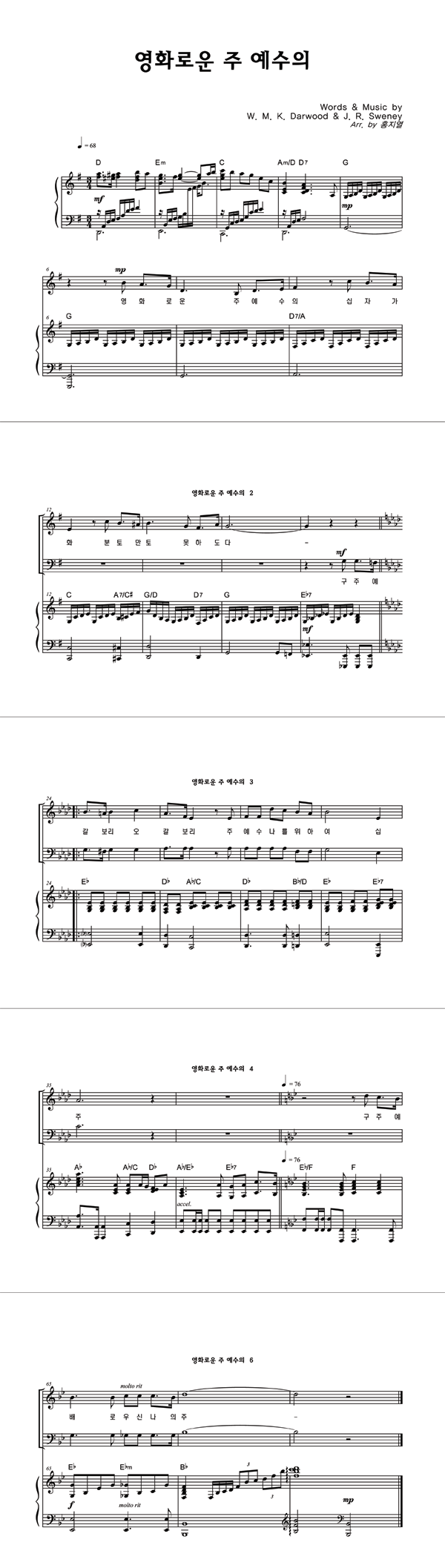 | 영화로운 주 예수의 | 성가 2부 + 피아노 반주 |