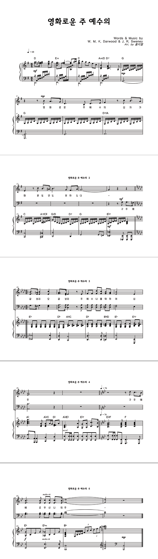 | 영화로운 주 예수의 | 성가 3부 + 피아노 반주 |