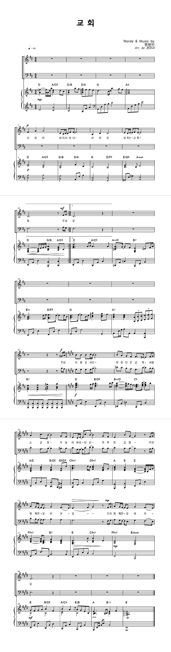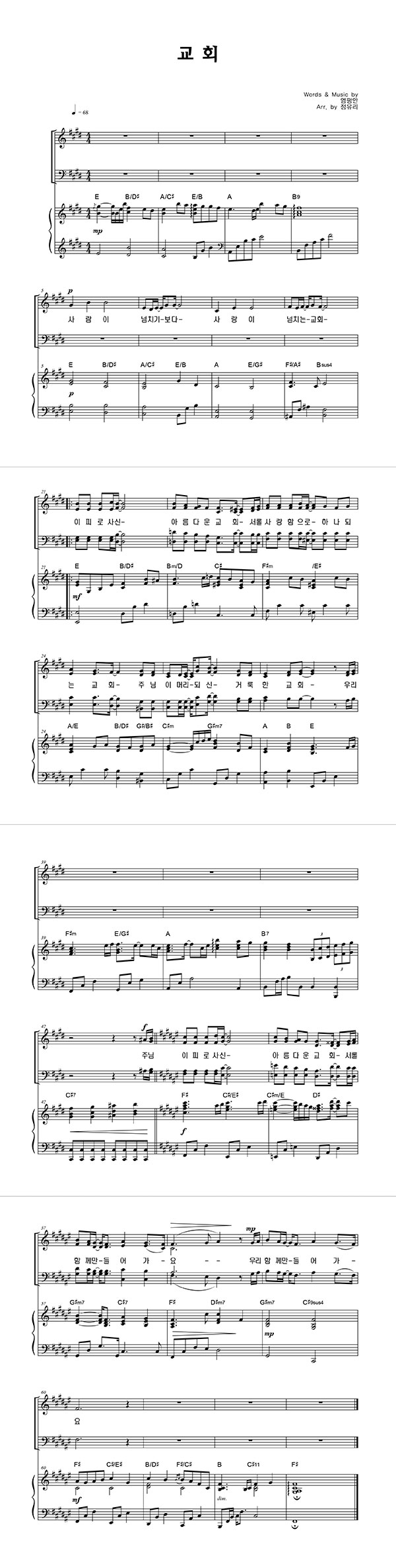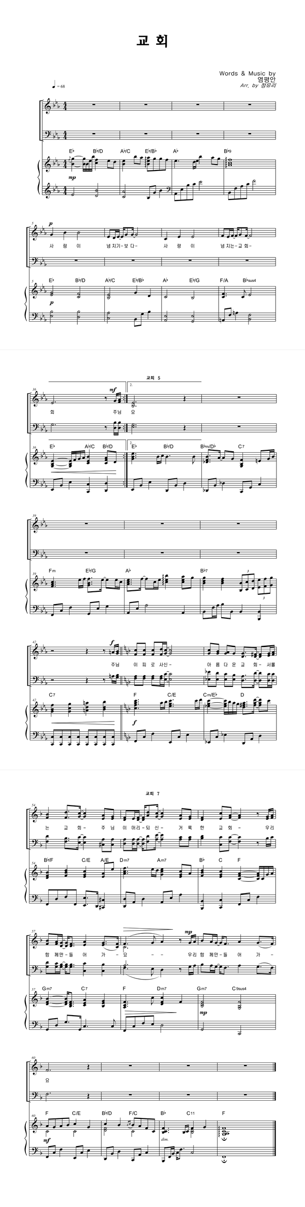 | 교회 | 성가 3부 + 피아노 반주 |