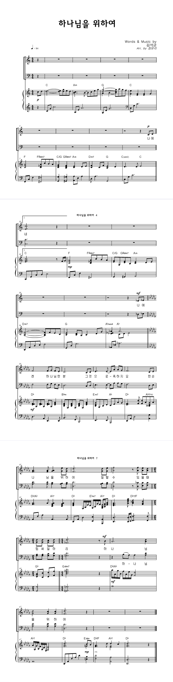 | 하나님을 위하여 | 성가 3부 + 피아노 반주 |
