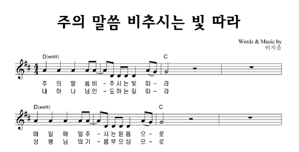| 주의 말씀 비추시는 빛따라 | 단선 |