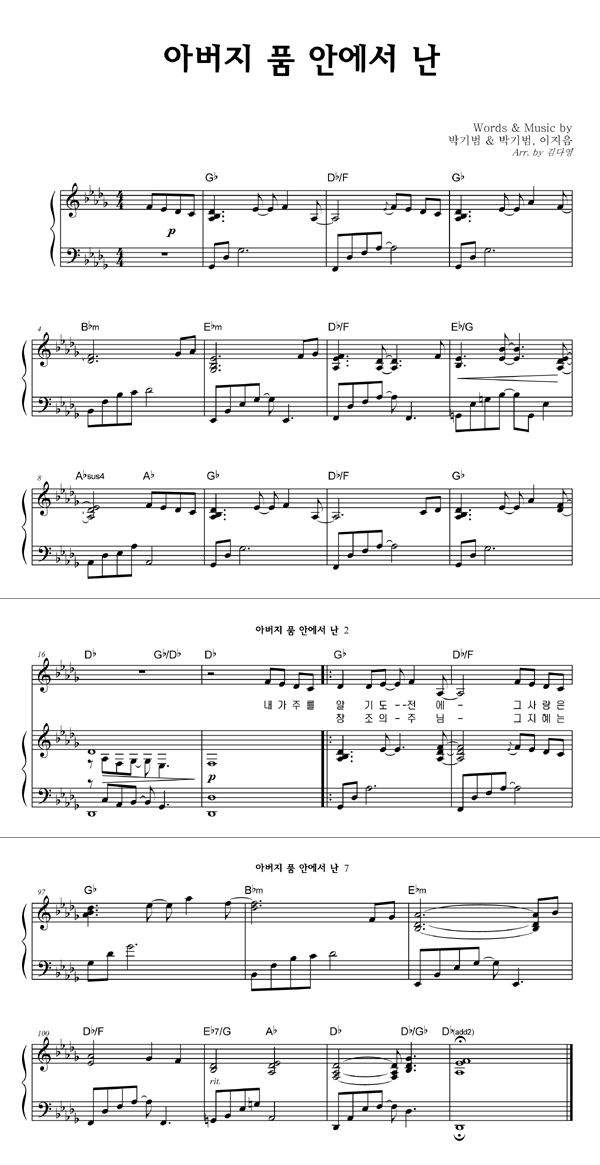 | 아버지 품 안에서 난 | 성가 3부 + 피아노 반주 |