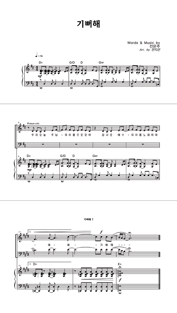 | 기뻐해 | 성가 3부 + 피아노 반주 |