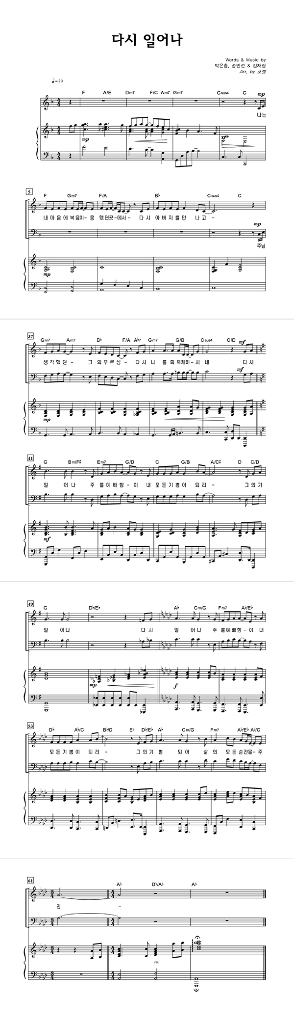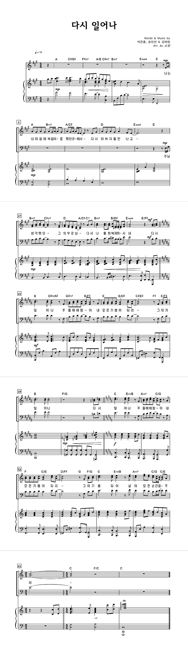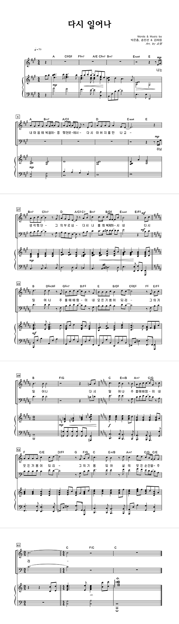 | 다시 일어나 | 성가 3부 + 피아노 반주 |