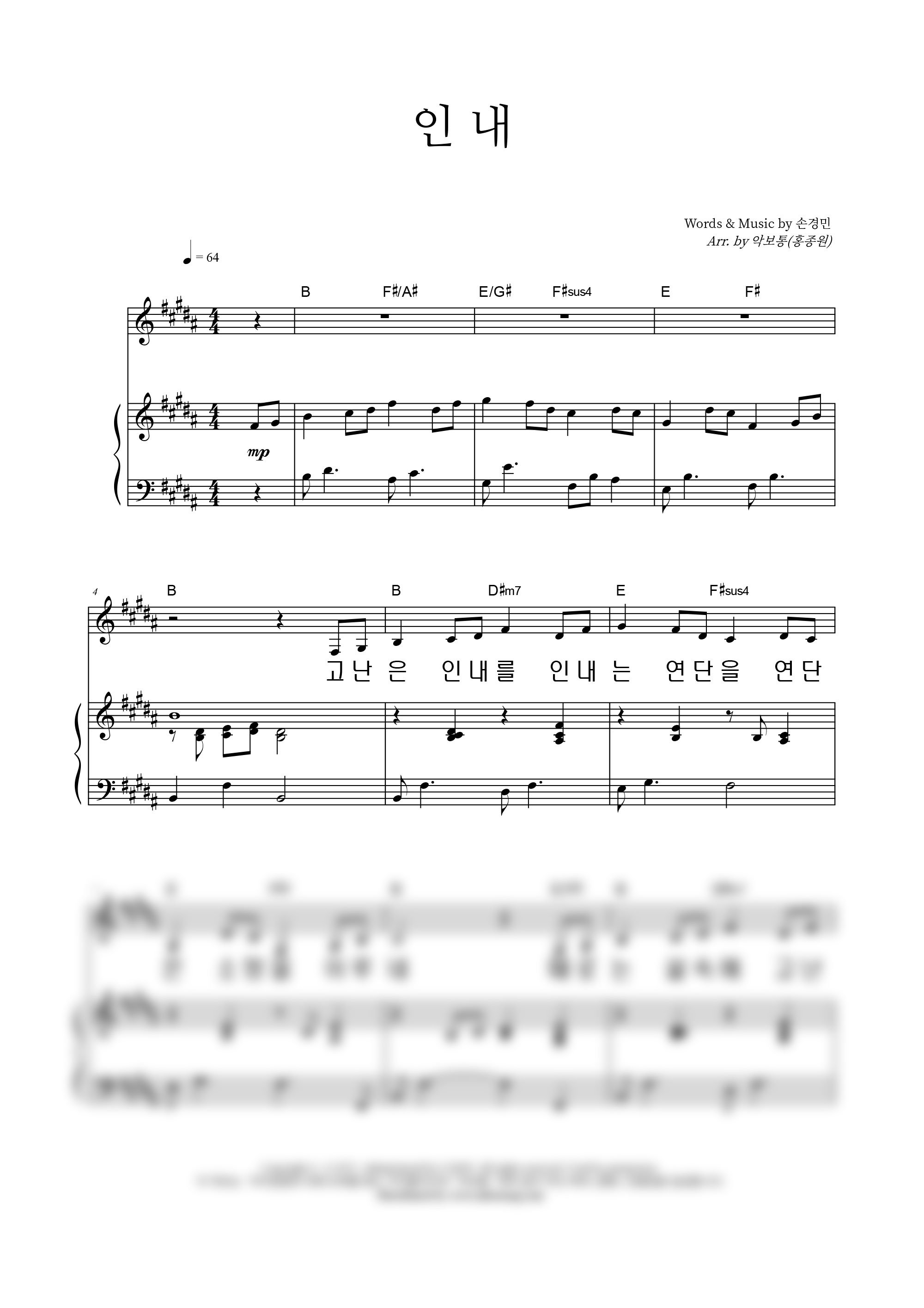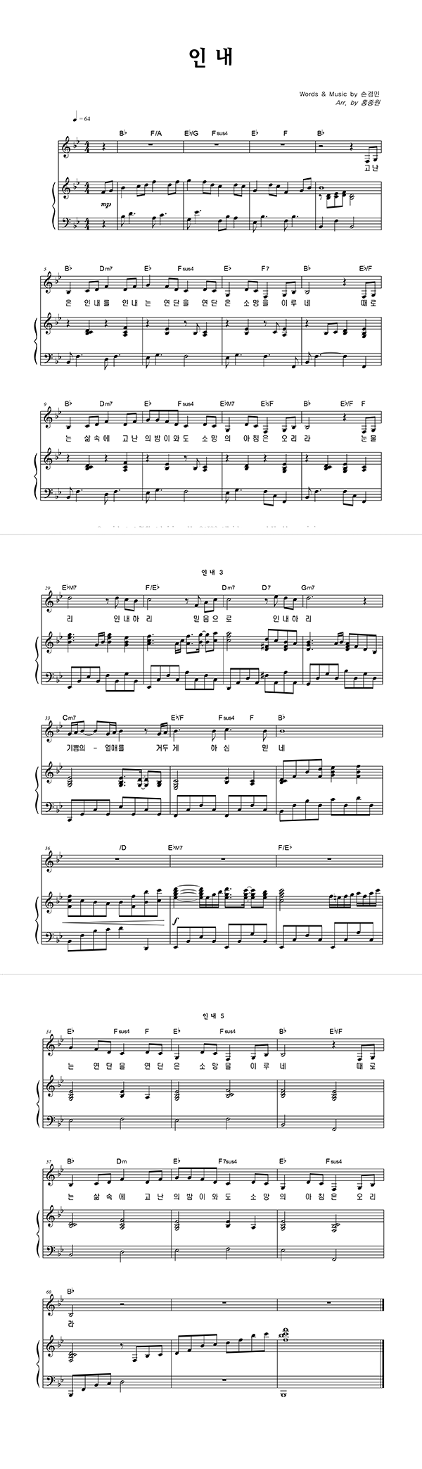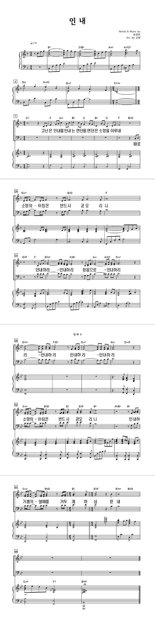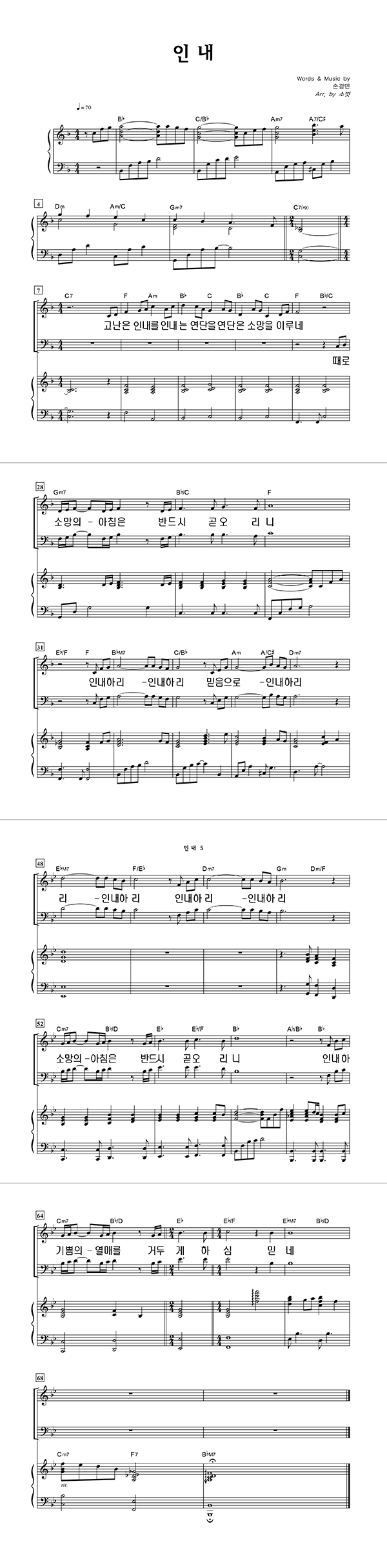 | 인내 큰글씨 | 성가 4부 + 피아노 반주 |