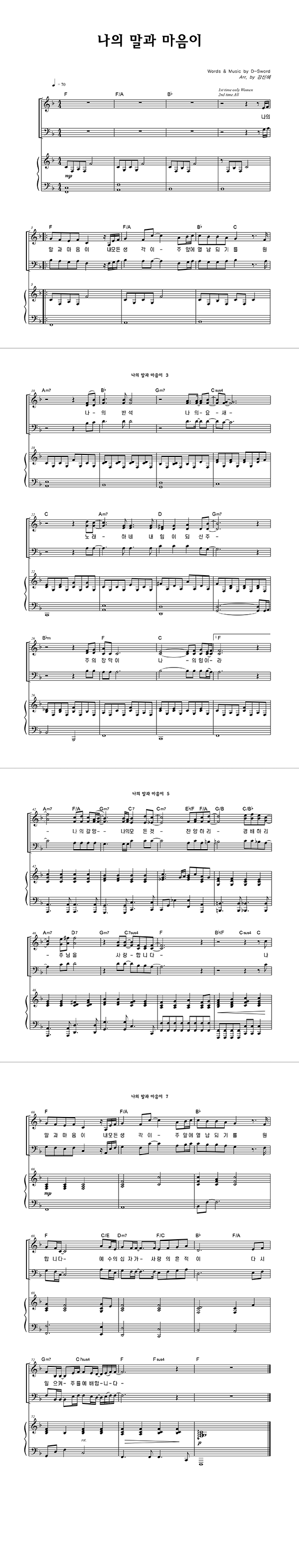 | 나의 말과 마음이 | 성가 2부 + 피아노 반주 |