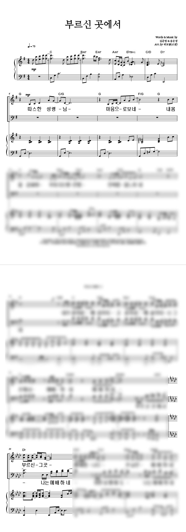 '부르신 곳에서' 의 다른 악보형식