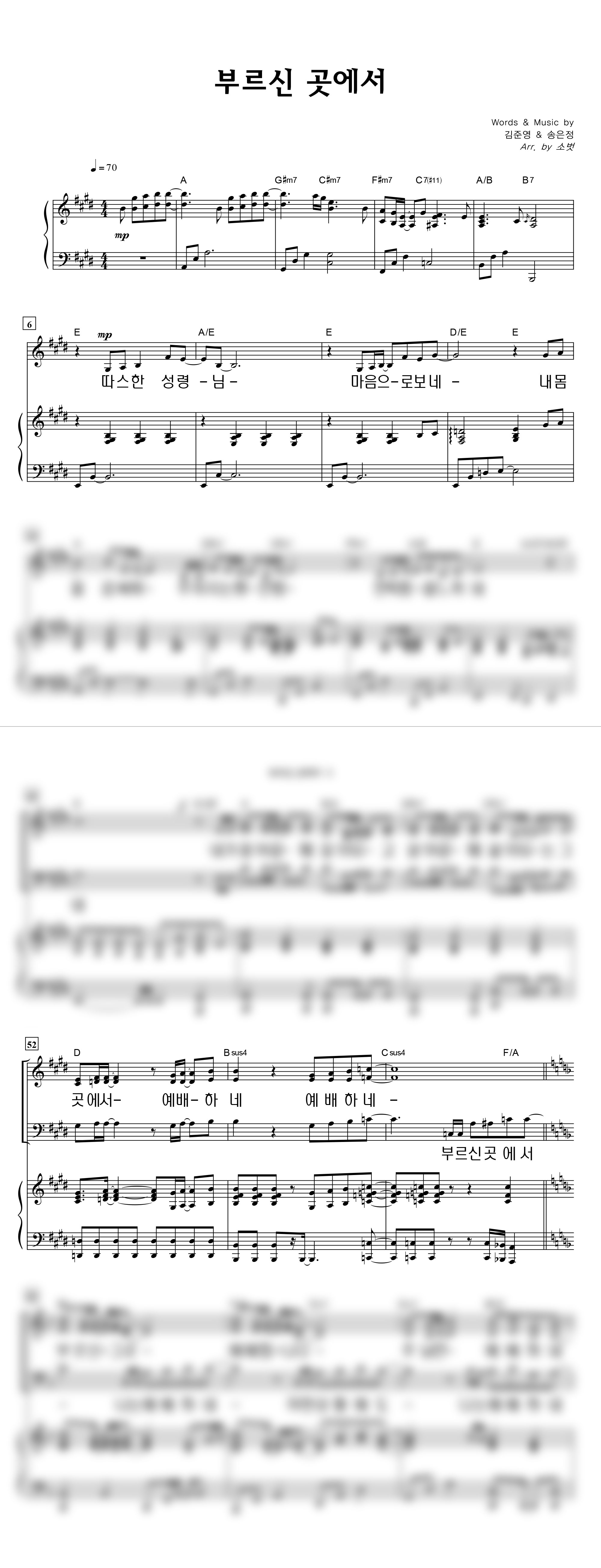 | 부르신 곳에서 | 성가 3부 + 피아노 반주 |