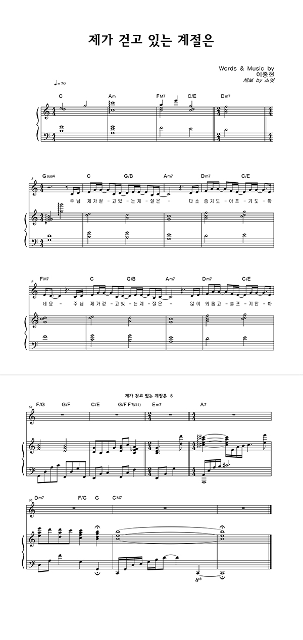'제가 걷고 있는 계절은' 의 다른 악보형식