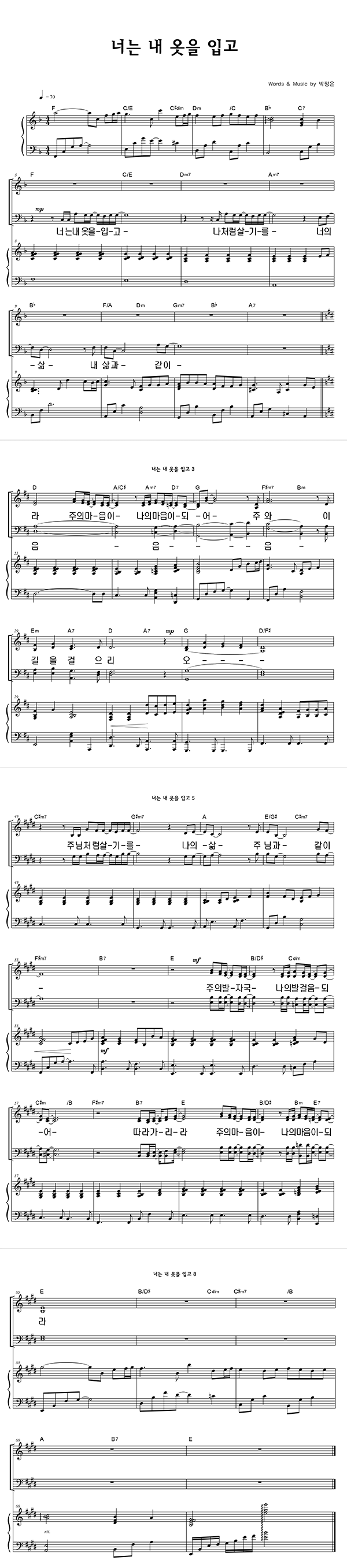 '너는 내 옷을 입고' 의 다른 악보형식