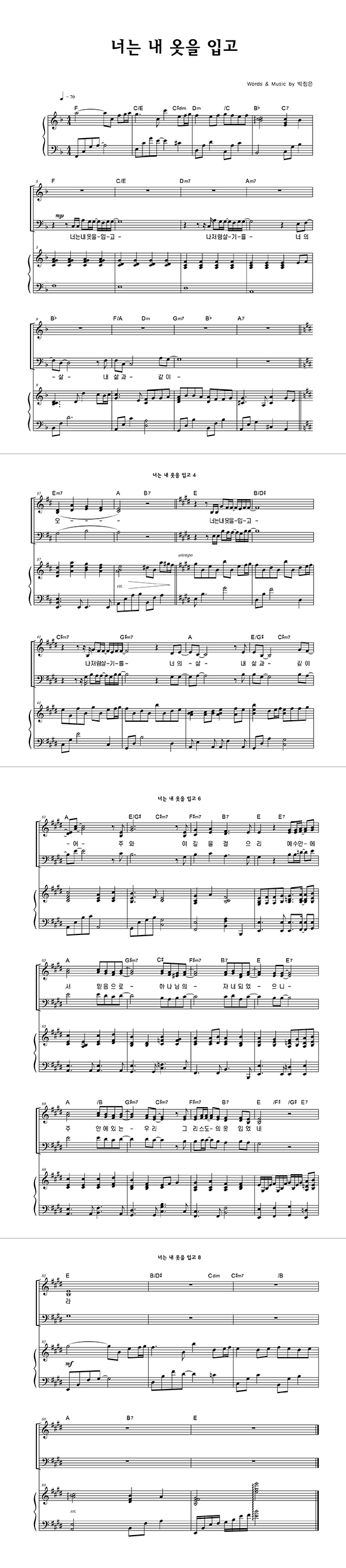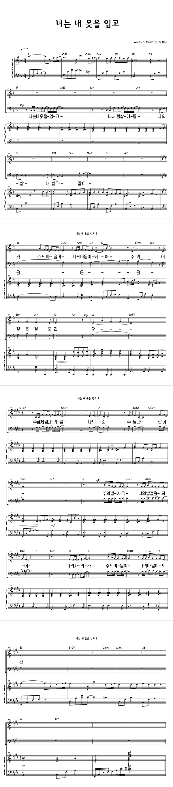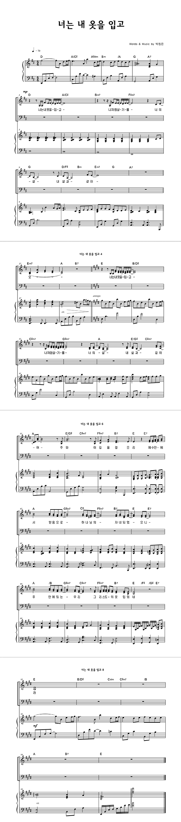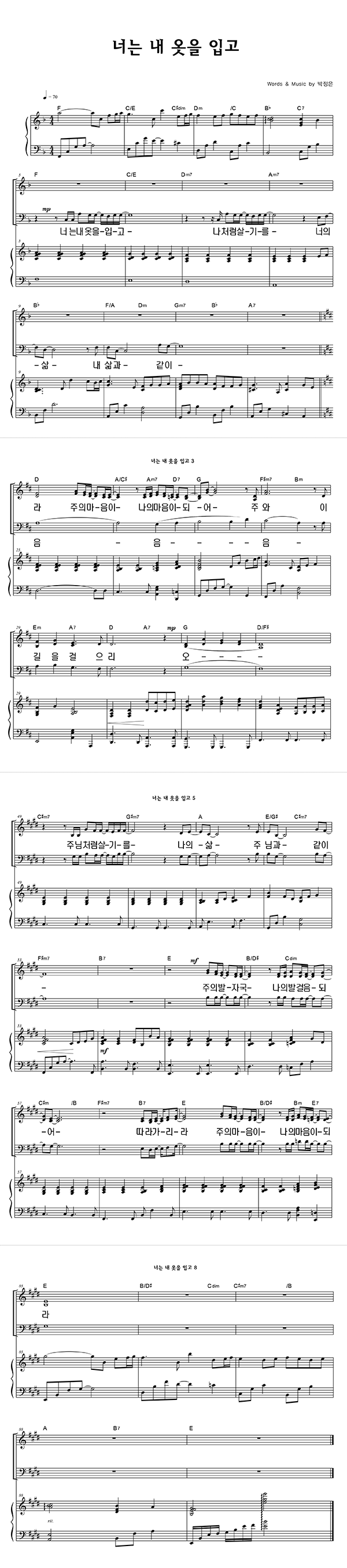 '너는 내 옷을 입고' 의 다른 악보형식