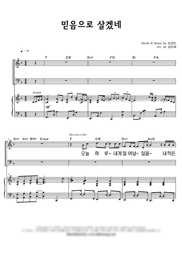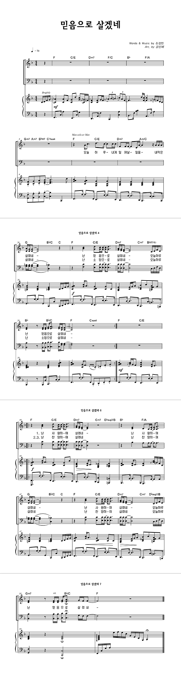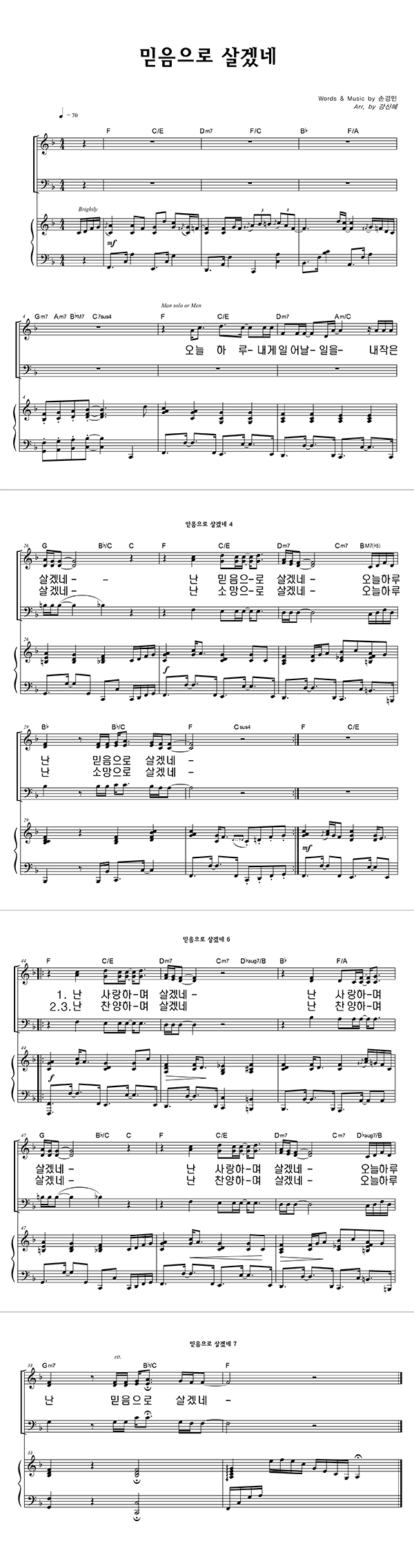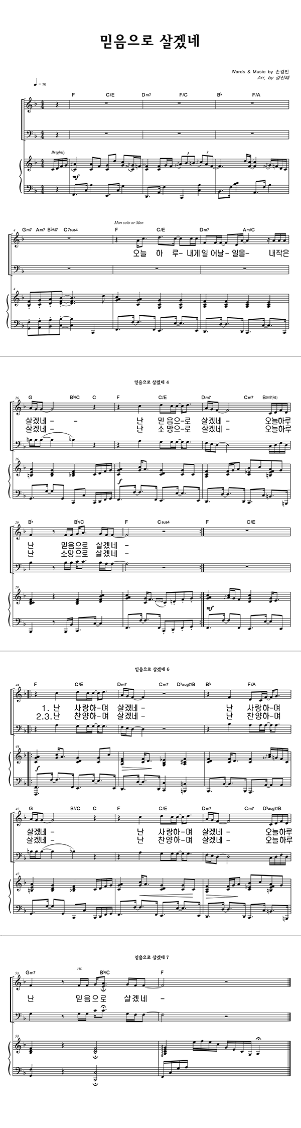 | 믿음으로 살겠네 | 성가 3부 + 피아노 반주 |
