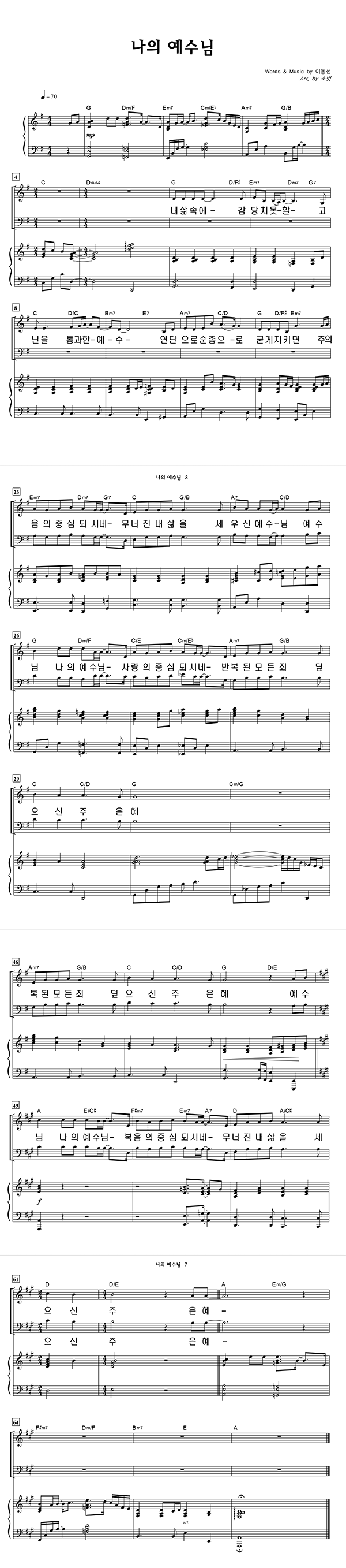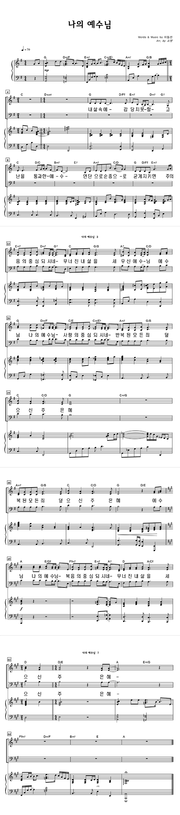 | 나의 예수님 | 성가 3부 + 피아노 반주 |