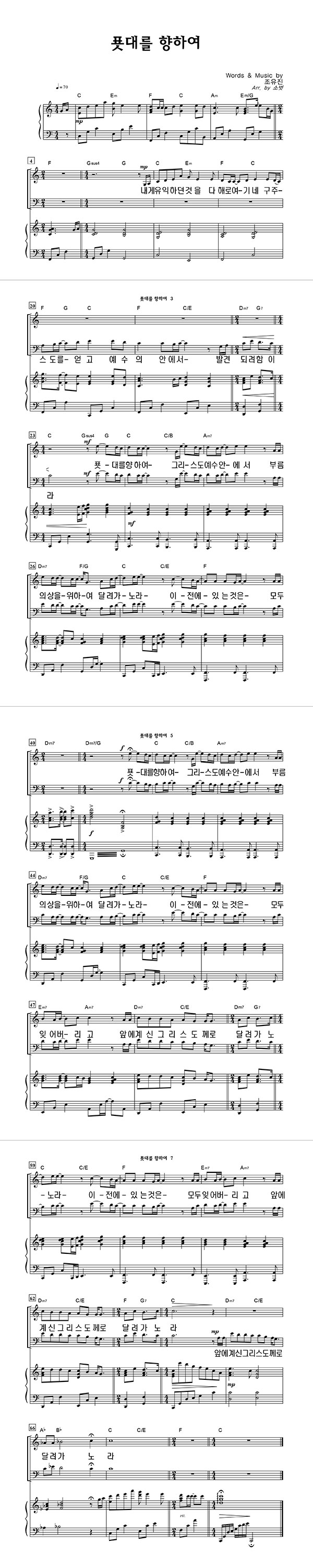 | 푯대를 향하여 | 성가 2부 + 피아노 반주 |