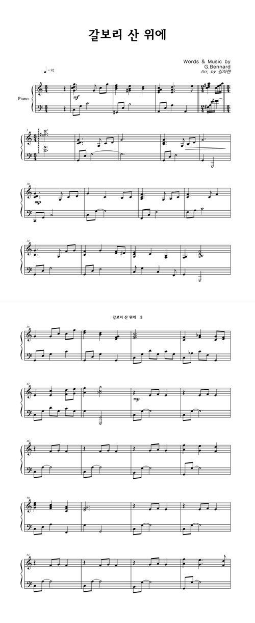 | 갈보리 산 위에 | 성가 3부 + 피아노 반주 |