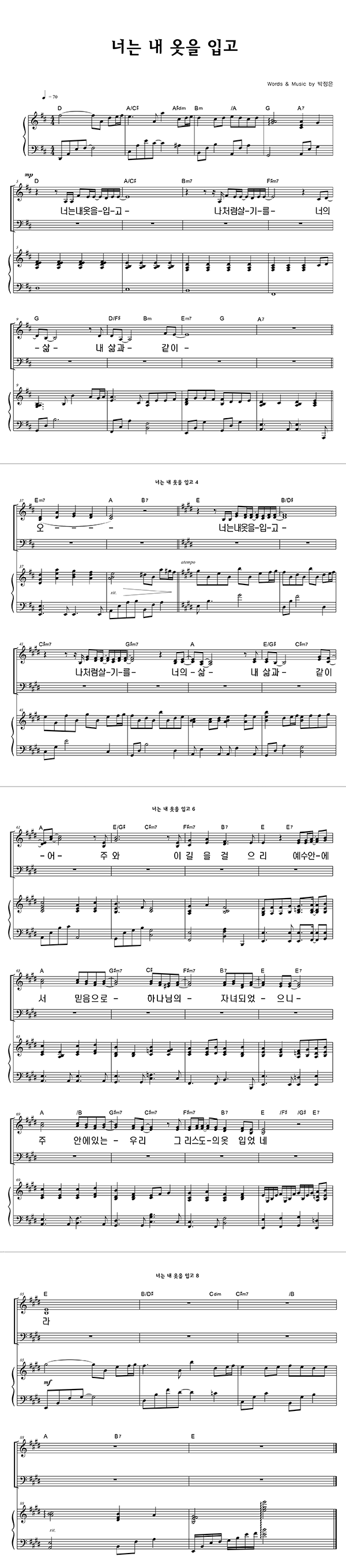 '너는 내 옷을 입고' 의 다른 악보형식