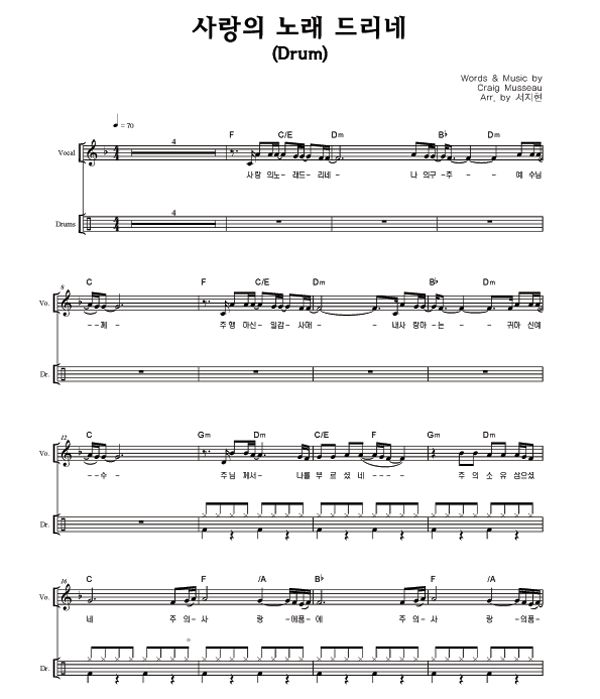 '사랑의 노래 드리네' 의 다른 악보형식