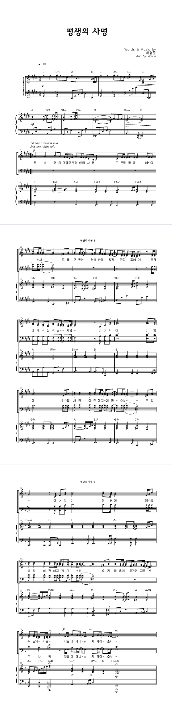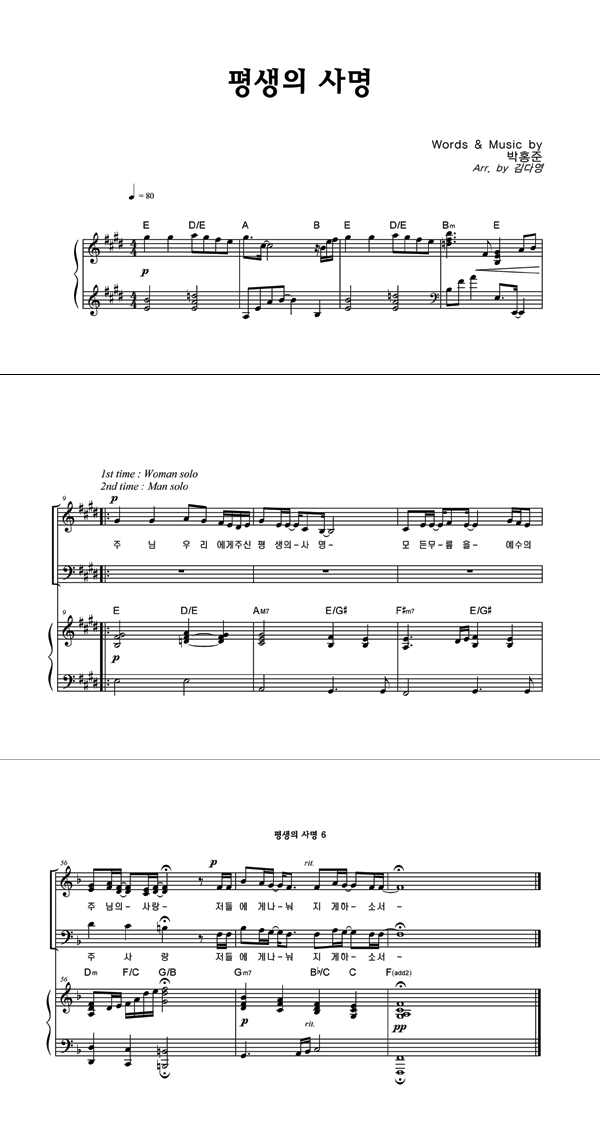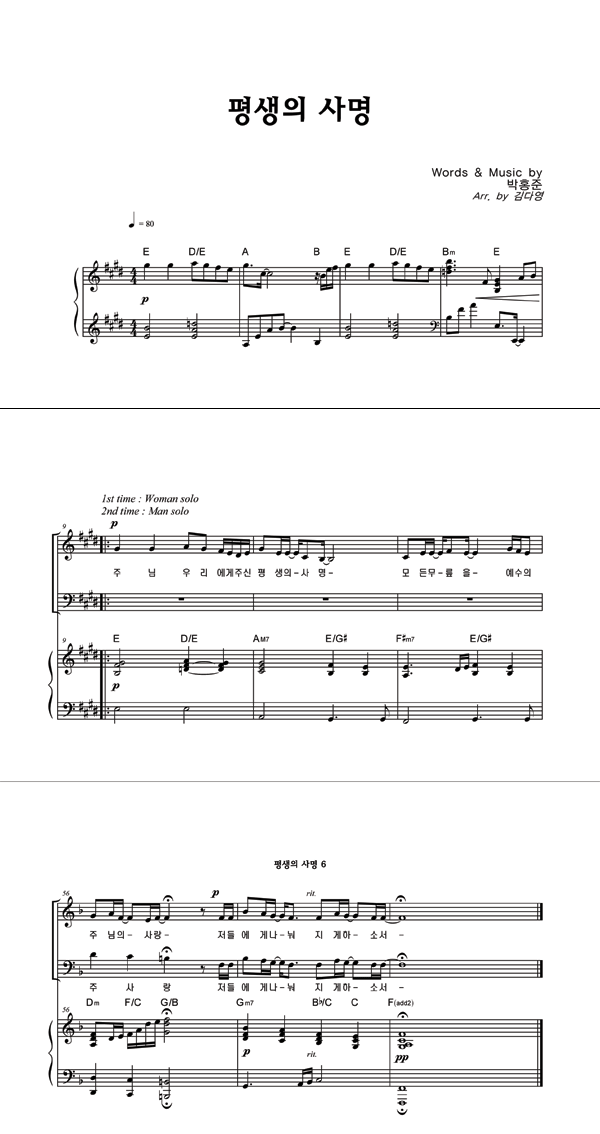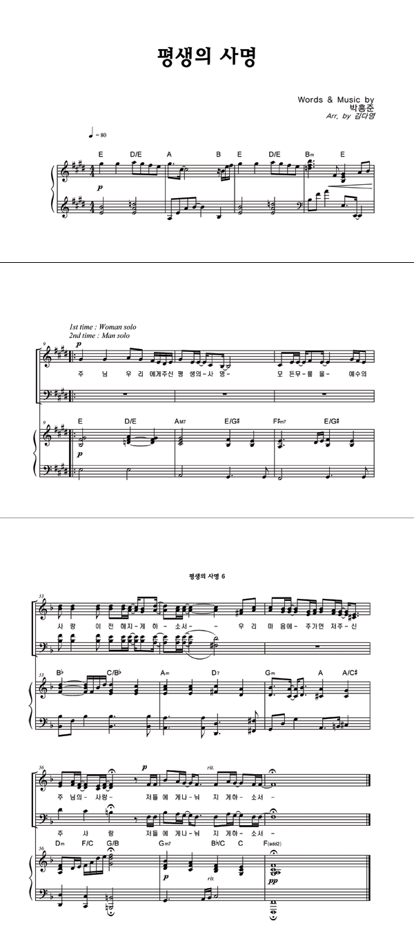 | 평생의 사명 | 성가 3부 + 피아노 반주 |