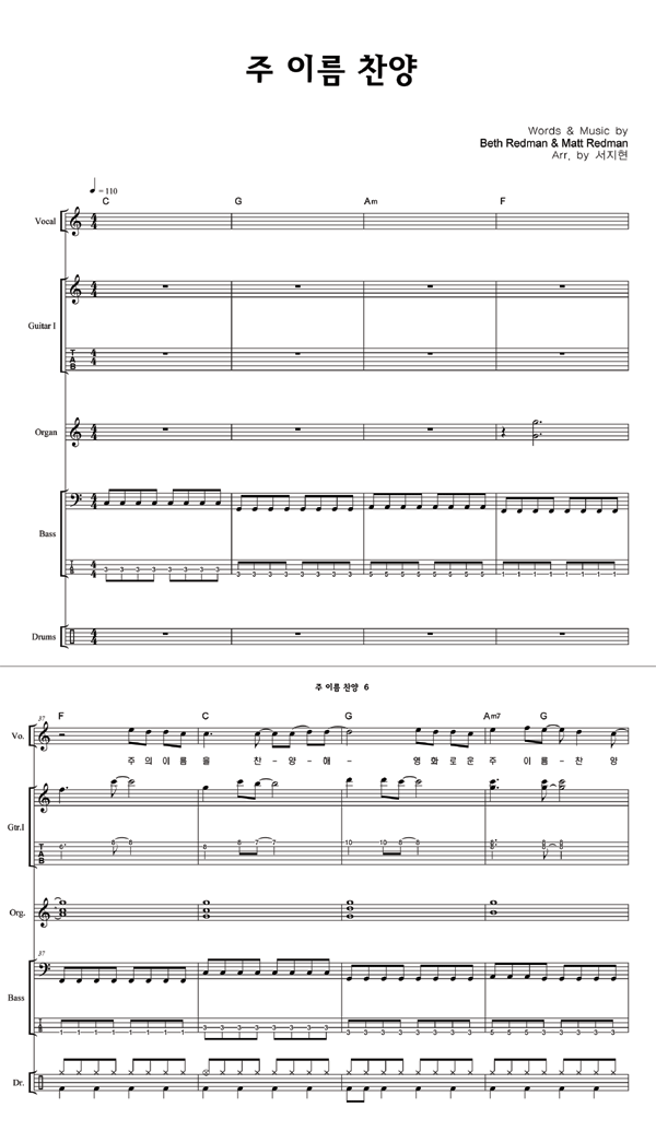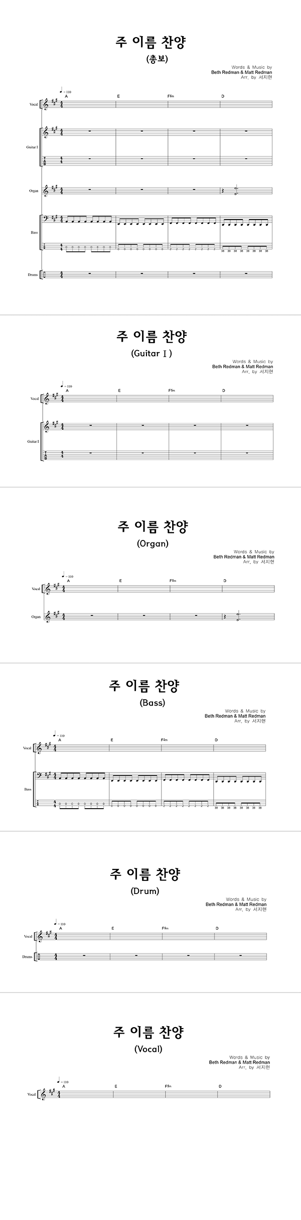 | 나는 주님을 찬양하리라 | 성가 4부 + 피아노 반주 |