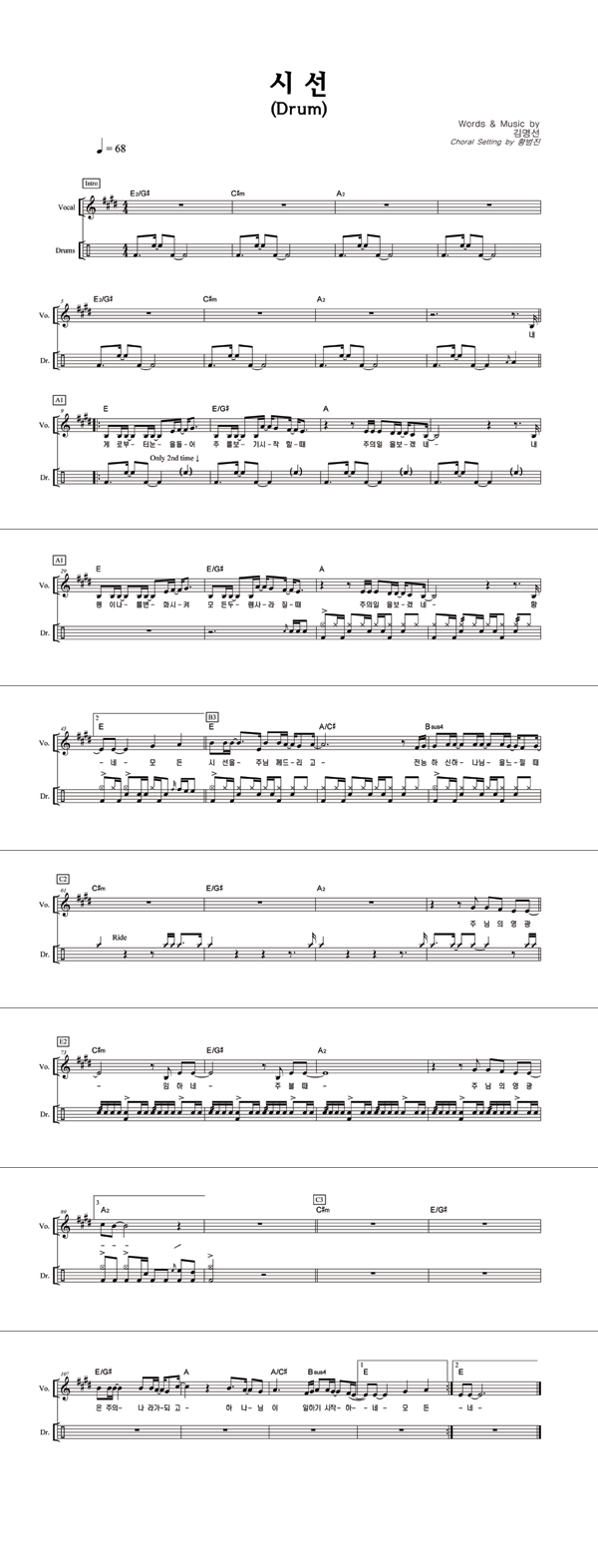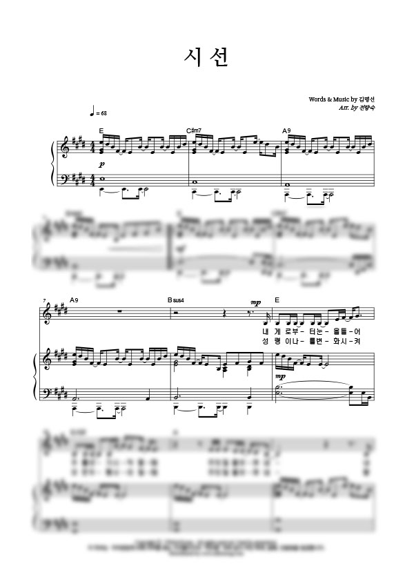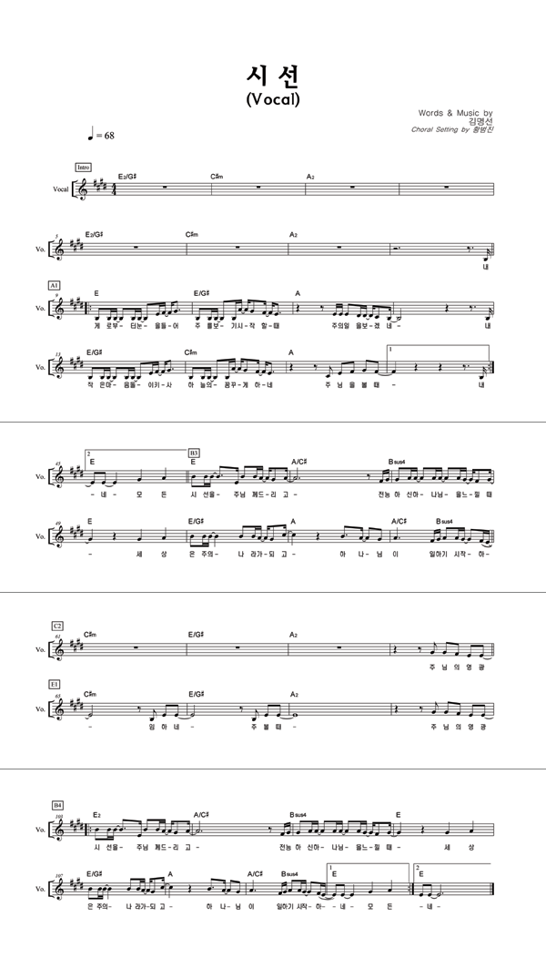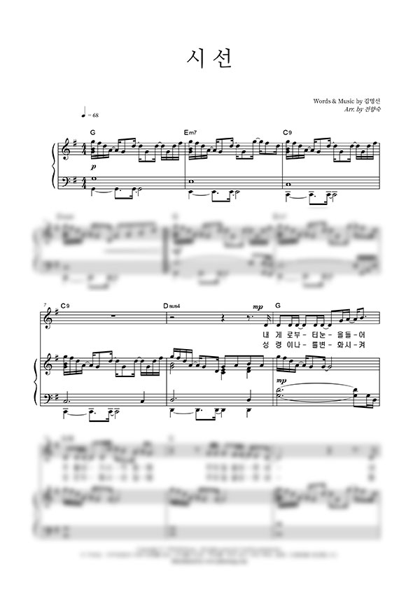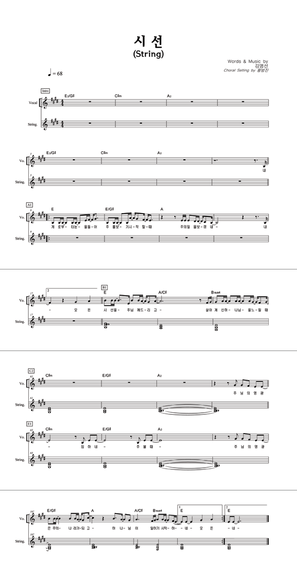 | 시선 | 성가 4부 + 피아노 반주 |