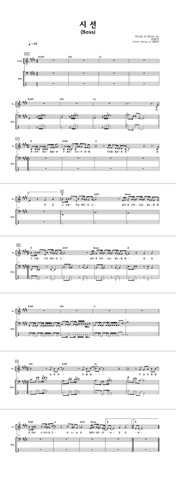 | 시선 | 성가 2부 + 피아노 반주 |