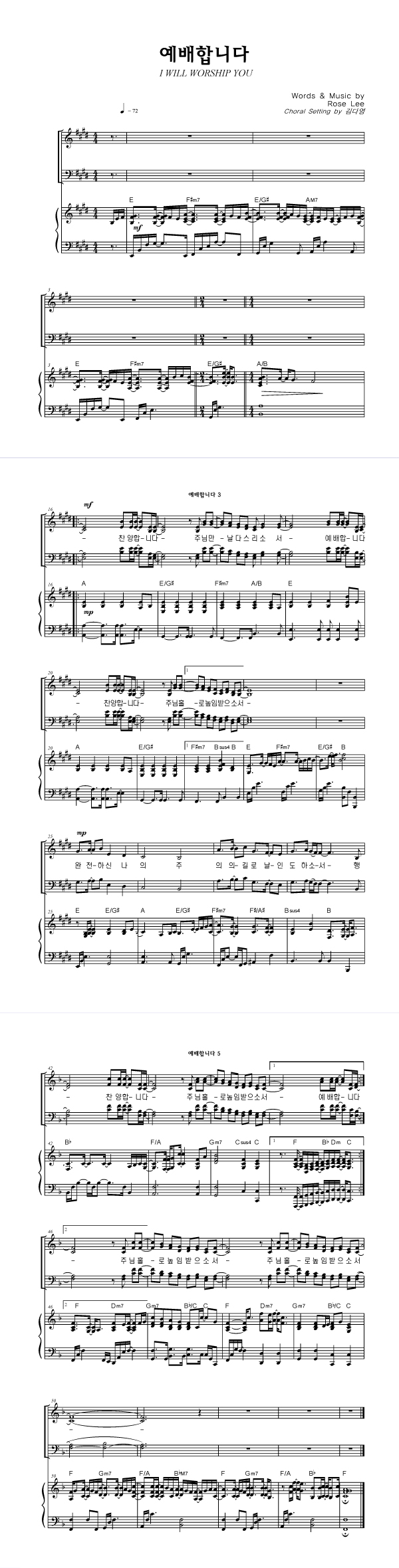 | 주님만 사랑하리 | 성가 3부 + 피아노 반주 |