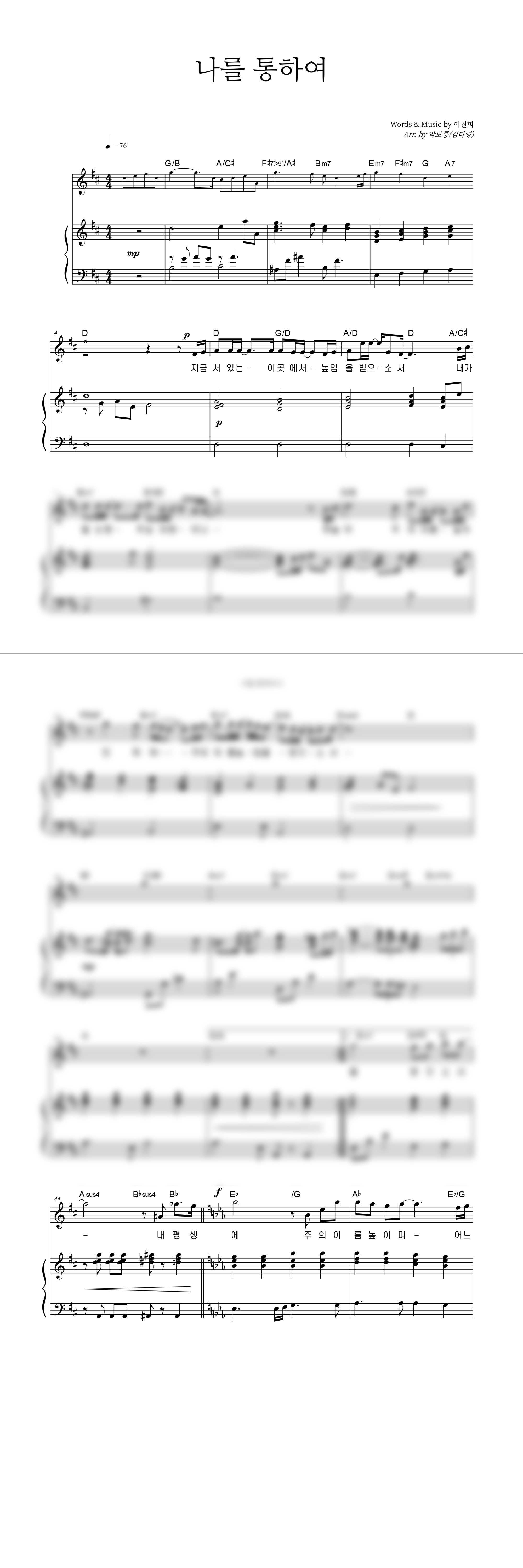 '나를 통하여' 의 다른 악보형식