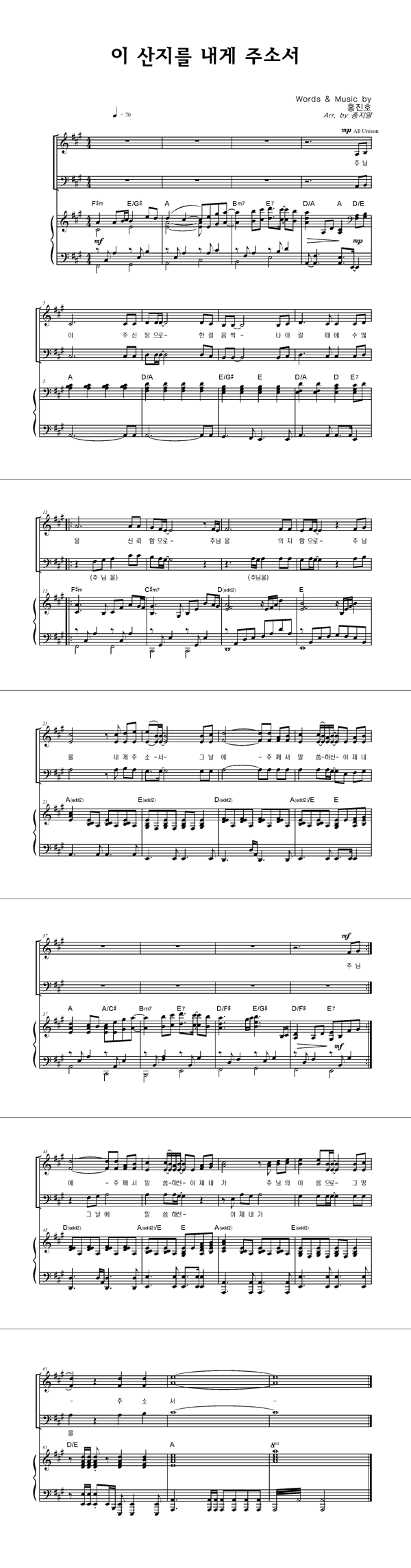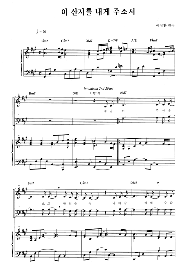 | 이 산지를 내게 주소서 | 성가 2부 + 피아노 반주 |