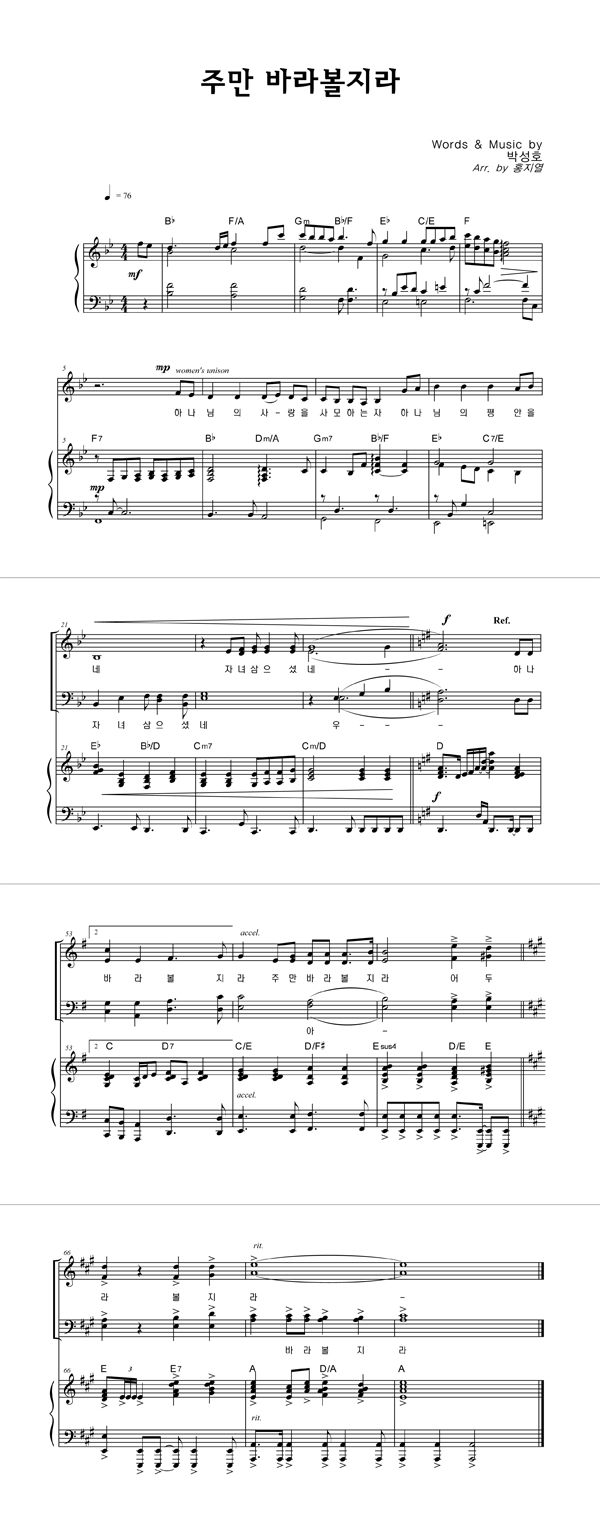 | 주만 바라볼지라 | 성가 3부 + 피아노 반주 |