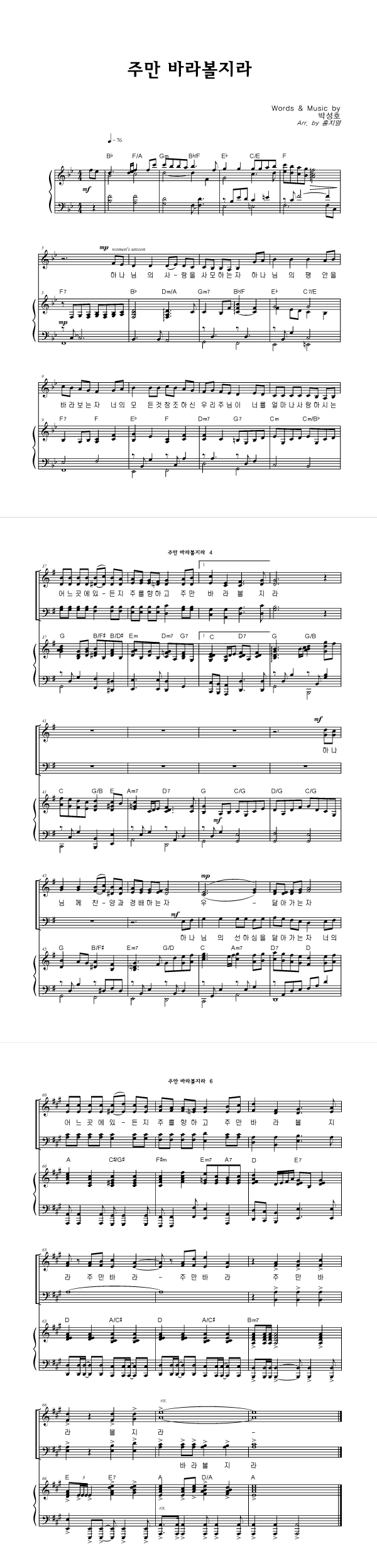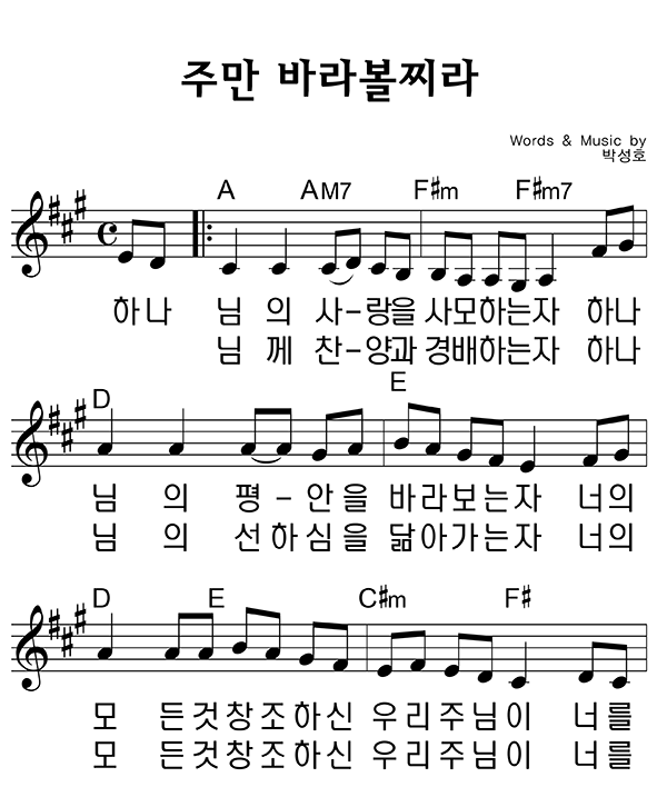 | 주만 바라볼지라 | 성가 4부 + 피아노 반주 |