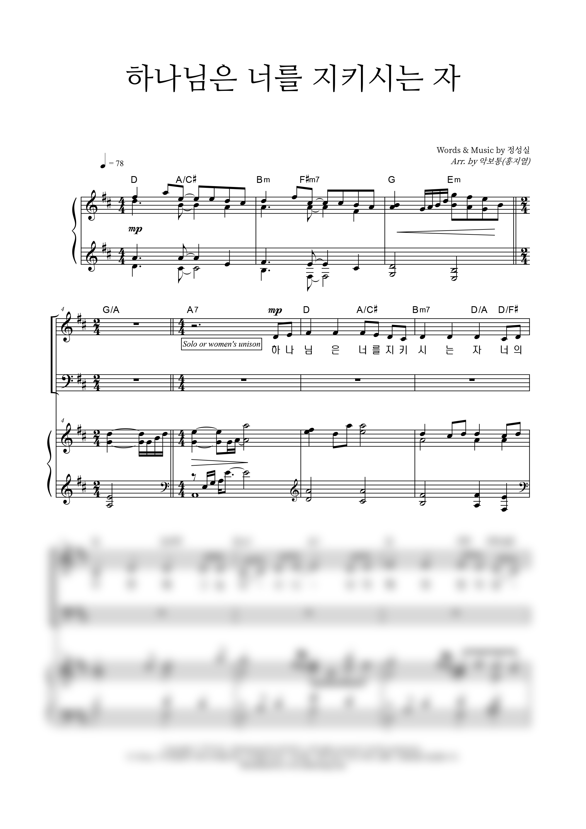| 하나님은 너를 지키시는 자 | 성가 2부 + 피아노 반주 |