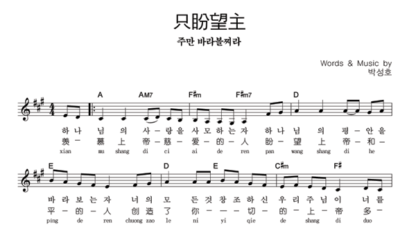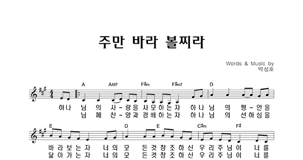 | 주만 바라볼지라 | 성가 2부 + 피아노 반주 |