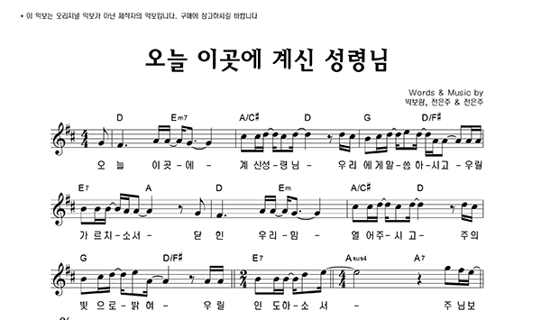 | 오늘 이곳에 계신 성령님 빅사이즈 | 단선 |