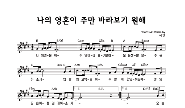 '나의 영혼이 주만 바라보기 원해' 의 다른 악보형식