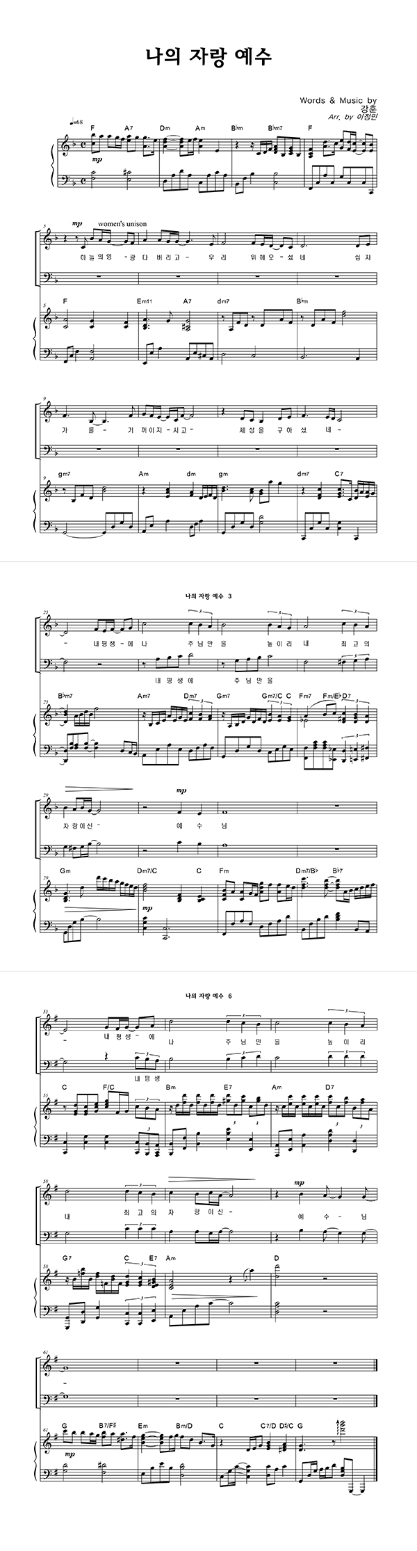 | 나의 자랑 예수 | 성가 3부 + 피아노 반주 |