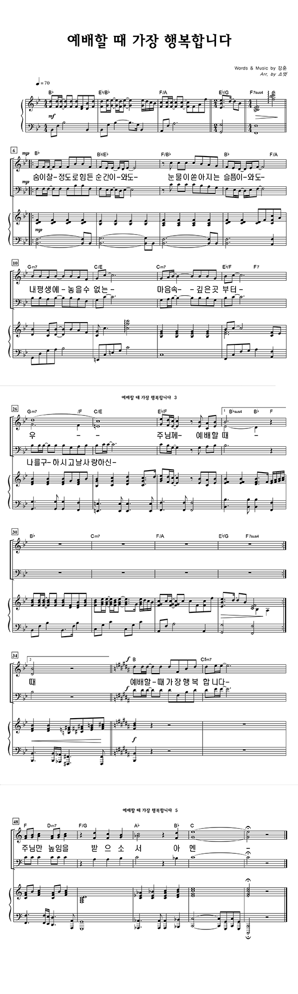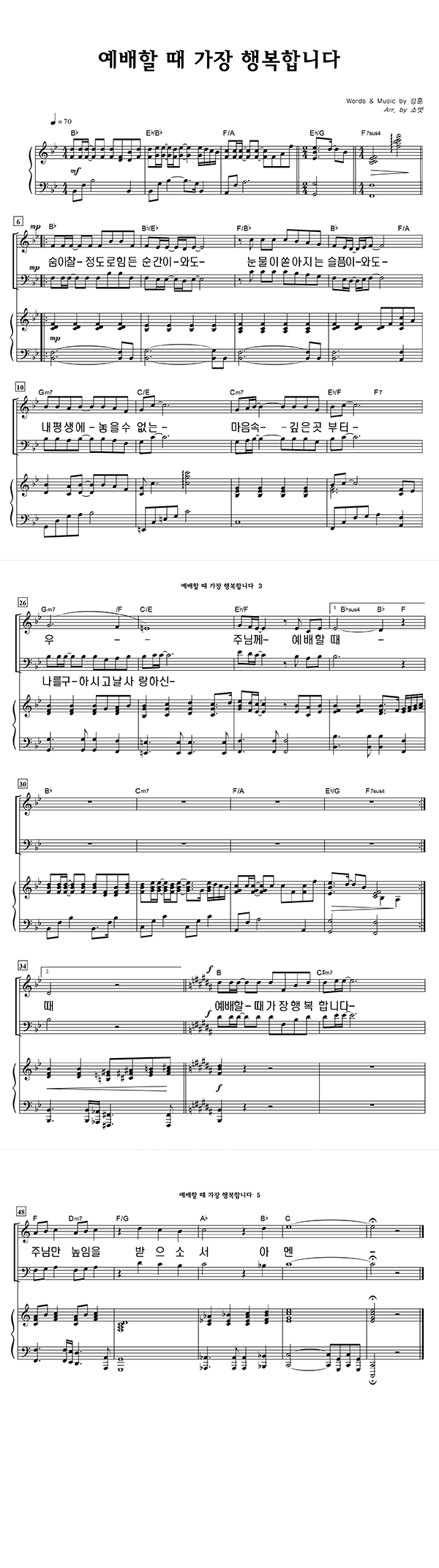 | 예배할 때 가장 행복합니다 | 성가 3부 + 피아노 반주 |