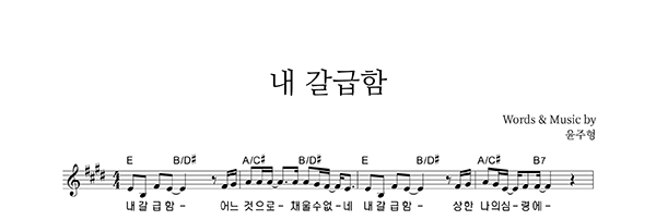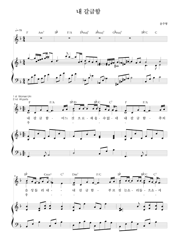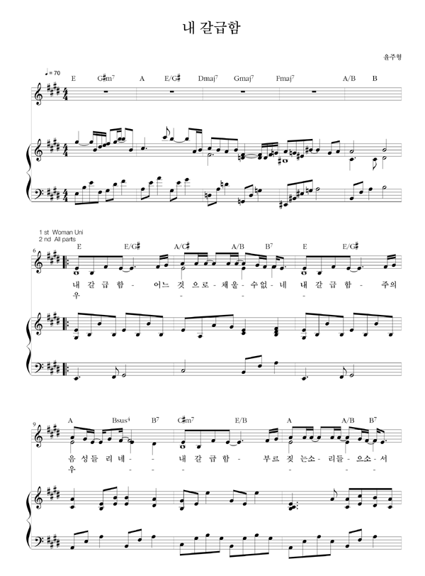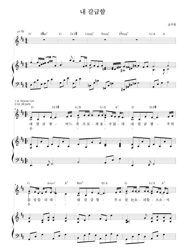 | 내 갈급함 어느 것으로 채울 수 없네 | 성가 2부 + 피아노 반주 |
