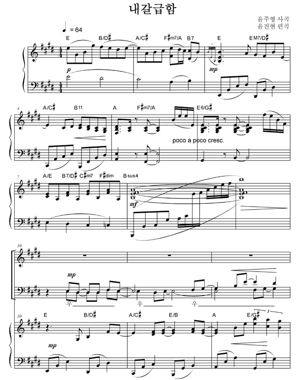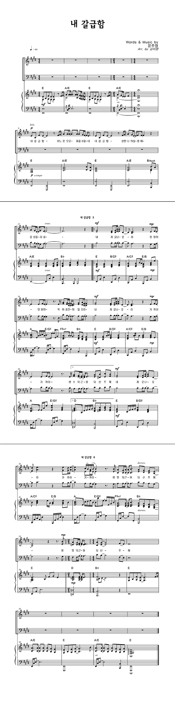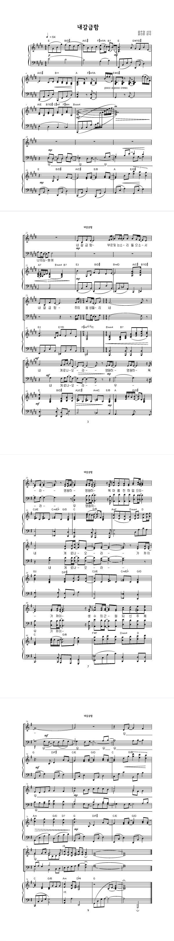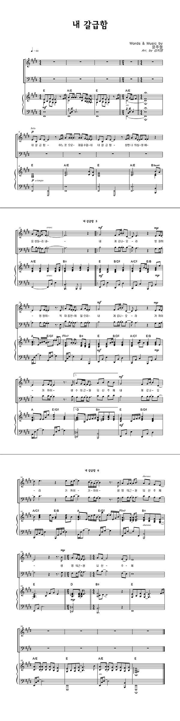 | 내 갈급함 어느 것으로 채울 수 없네 | 성가 3부 + 피아노 반주 |
