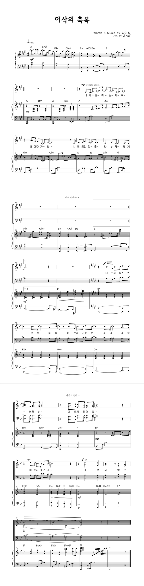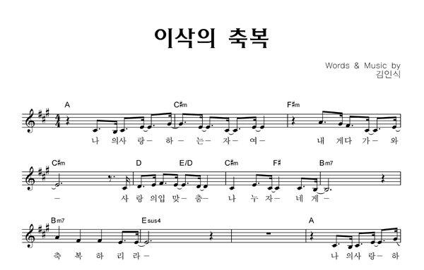 | 이삭의 축복 | 성가 2부 + 피아노 반주 |