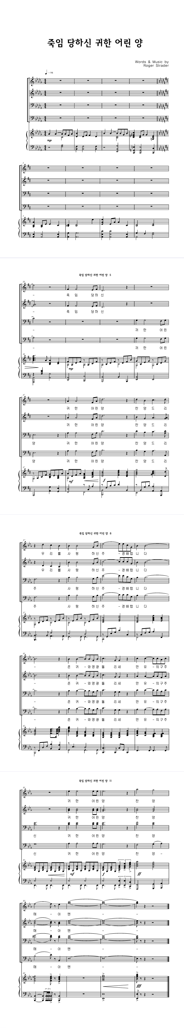 | 죽임 당하신 귀한 어린 양 | 성가 4부 + 피아노 반주 |